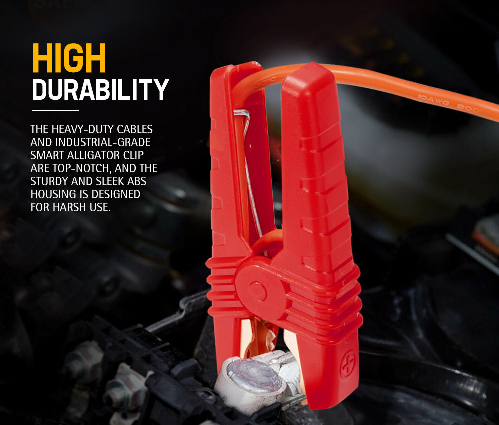 • High Durability: The heavy-duty cables and industrial-grade smart alligator clip are top-notch, and the sturdy and sleek ABS housing is designed for harsh use.