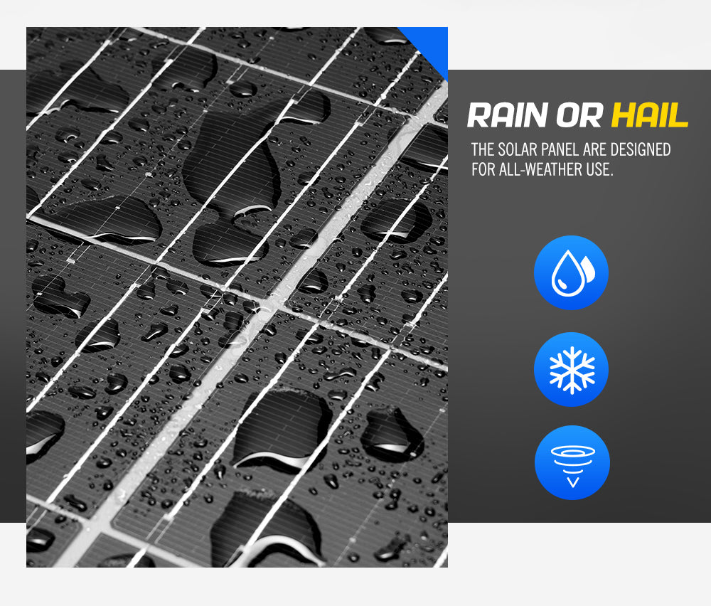 • Waterproof Your Power: Our fixed solar panel is built tough, with waterproof protection that makes it ideal for all your outdoor activities in the harsh climate.