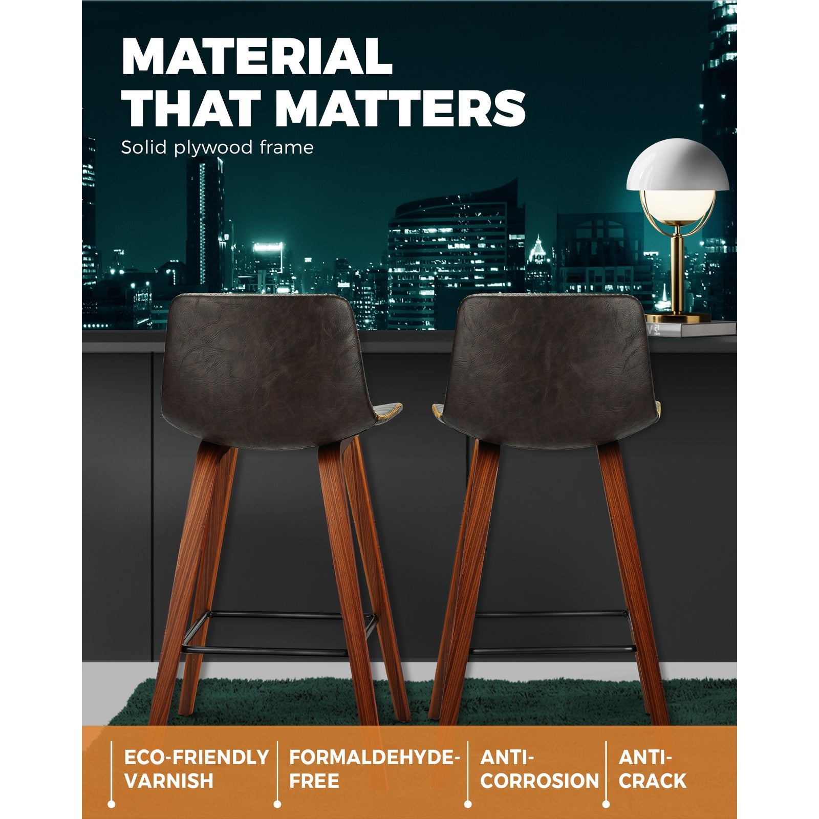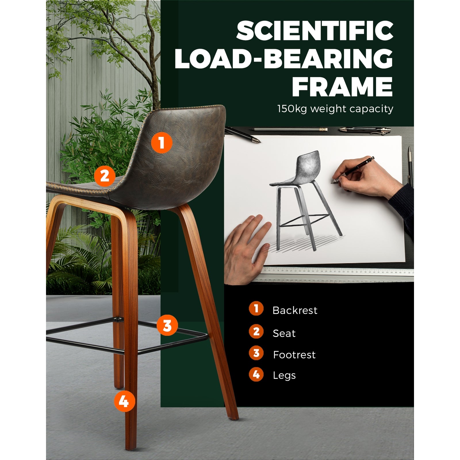 2x Oikiture Wooden Bar Stools Vintage Chair Kitchen Dining Chairs Retro Coffee