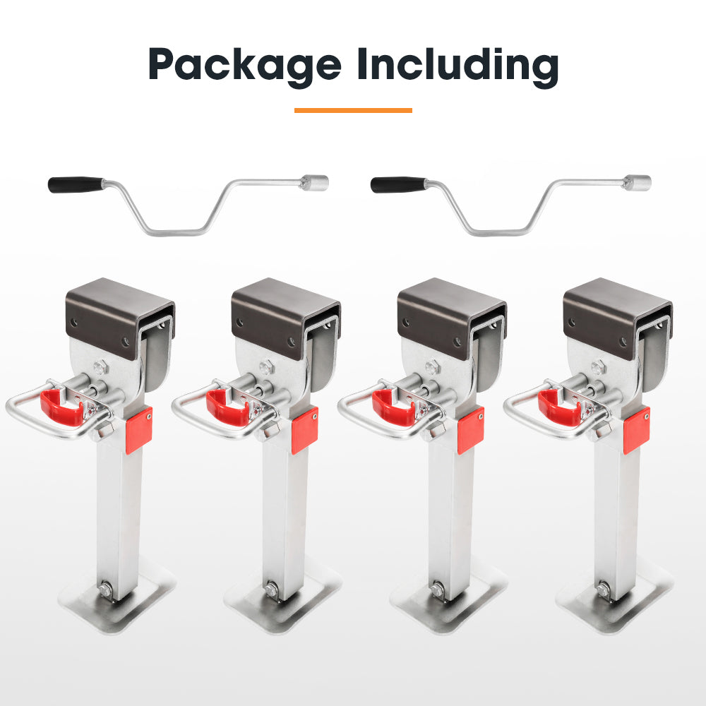 4x 470mm Drop Down Corner Legs Steadies & Handle Steel Foot Caravan Trailer