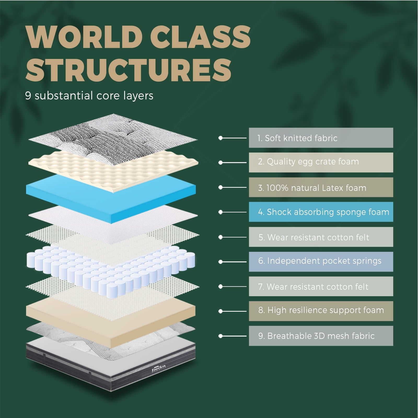 Bedra Double Mattress Breathable Spring Euro Top Natural Latex Foam 36cm 7 zone