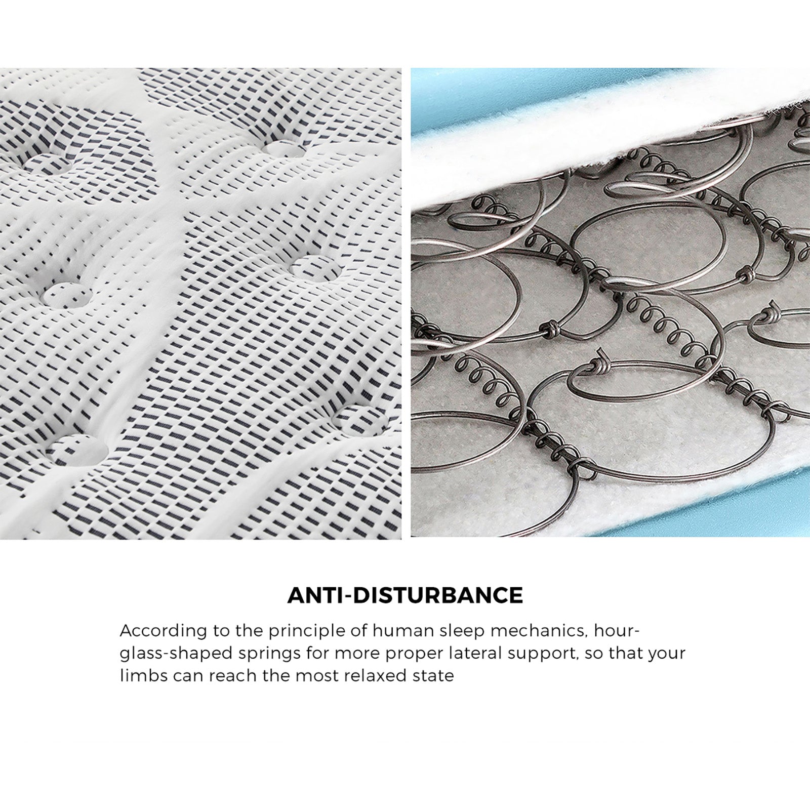 Are you ready to experience a night of unparalleled comfort and support? Look no further than our Bedra Bedding Bonnell Spring Mattress, the perfect solution for a rejuvenating night's sleep. Crafted with precision and designed for your well-being, this mattress is the epitome of restful slumber. Our Bonnell spring system is the heart of this mattress. These tempered steel coils are expertly engineered to provide exceptional durability and consistent support. With their unique hourglass shape, these springs offer stability, allowing for a well-aligned spine, and promoting sound sleep. Optimal support is tailored into our Bonnell spring system to provide the ideal balance between support and comfort. You'll experience firm support where it's needed most, and a touch of cushioning in all the right places. This design helps alleviate pressure points and ensures a restorative sleep experience.