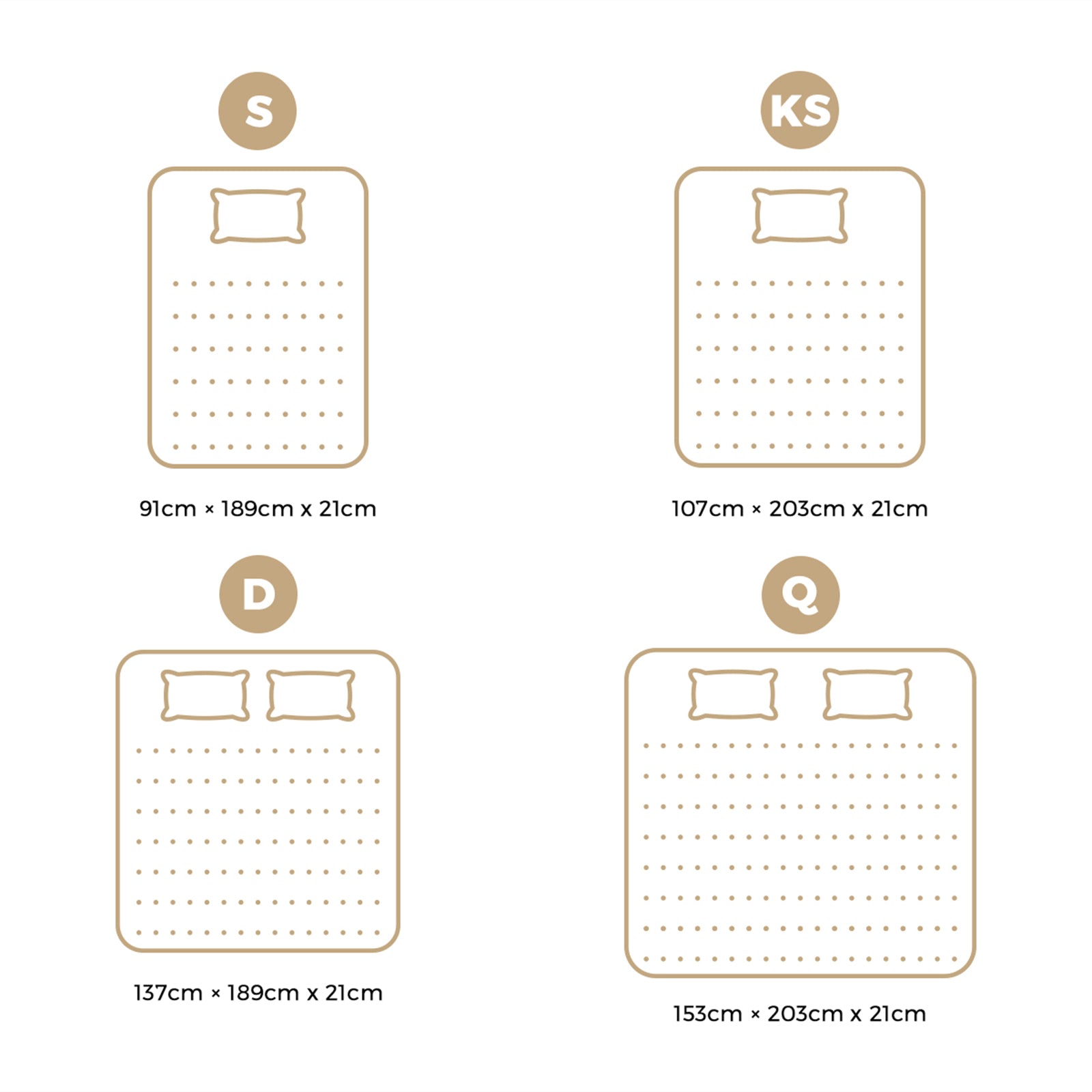Bedra Bedding. A name synonymous with exceptional beddings that is the epitome of comfort, luxury and meticulous finishing. It is little wonder that the Bedra Bedding Bonnell Spring Mattress is considered as one of the finest Bonnell spring mattresses that money can buy. And then some. The 21cm thick premium knitted fabric tight top mattress also delivers the right balance of firmness and softness where the medium-firm mattress is a delight to rest on as it shapes itself to contour the natural curves of your body perfectly. NOTE The mattress comes in a vacuum-packed packaging and requires 24 hours to fully expand to its desired shape. For health and hygiene reasons, we cannot accept returns for refunds or exchange for pillows, quilts, toppers, mattress protectors and mattresses unless they are faulty or not as ordered. In the unlikely event the mattress is not to your satisfaction, please reach out to our customer service to help resolve the issue.