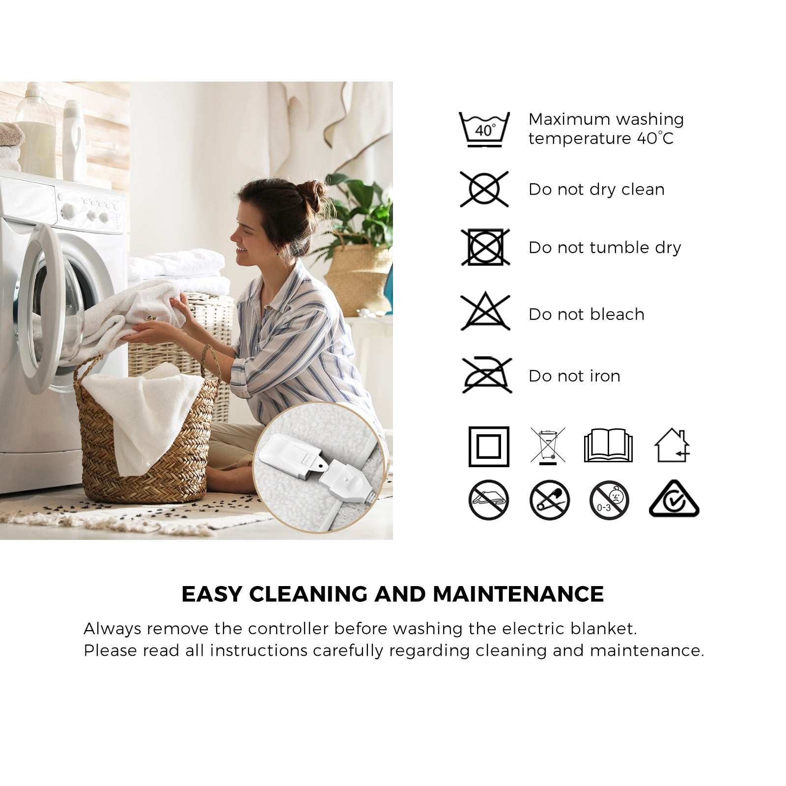 Bedra Electric Blanket Washable Fleece Heated Fully Fitted Winter Pad Queen