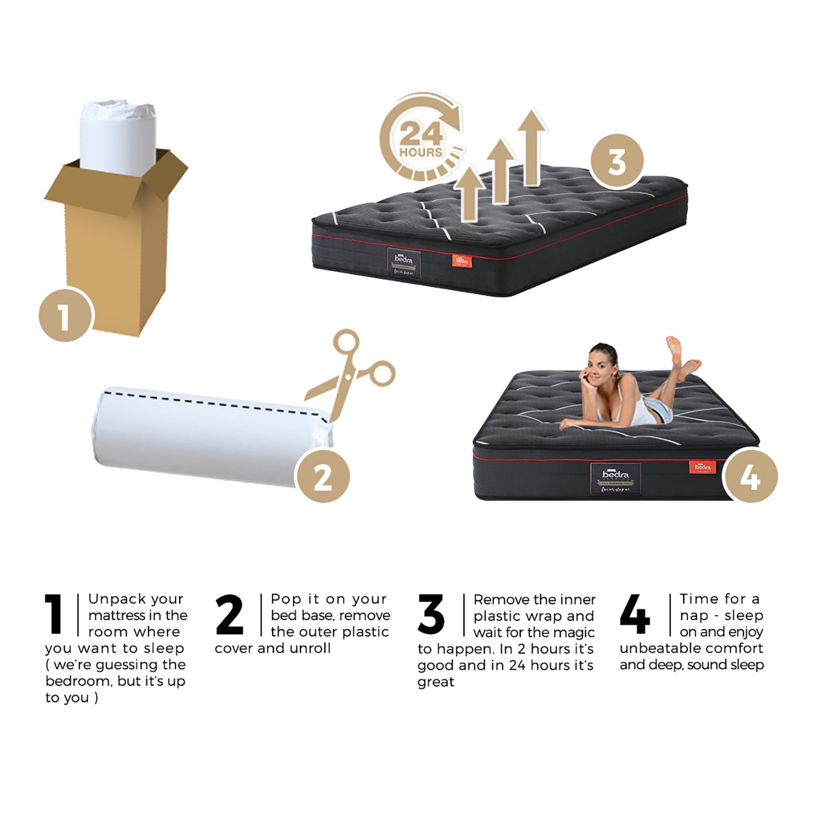 Bedra Bedding. A name synonymous with exceptional beddings that is the epitome of comfort, luxury and meticulous finishing. It's little wonder that the Bedra Bedding Pocket Spring Mattress is considered as one of the finest pocket spring mattresses that money can buy. And then some. Featuring a 7-layer construction that comprises the benefits of an independent pocket spring system and matched with a host of other desirable mattress technologies, the Bedra Bedding pocket spring mattress ensures superior sleep with optimum spinal adjustment, localised zonal support and many wonderful hours of uninterrupted sleep with minimal motion transfer disturbance. Inside the mattress, a precisely calibrated pocket spring system working in tandem with impact-absorbing sponge foam, high-resilient foam and wear-resistance cotton felt deliver the right balance of firmness and softness.