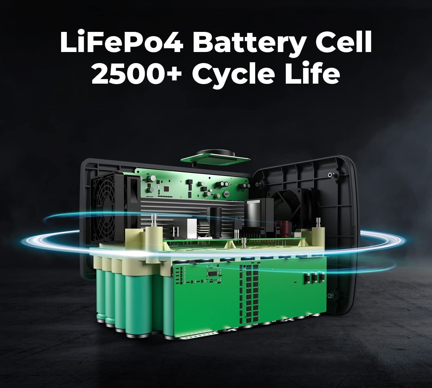 • LiFePO4 Battery with 2,500+ Life Cycles to 80%
