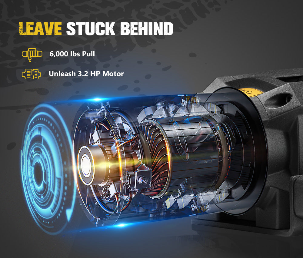 • Unleash Unstoppable Power: Tackle any challenge with our 3.2 HP electric winch. Effortlessly recover your ATV/UTV with a remarkable 6,000-pound pull capacity.