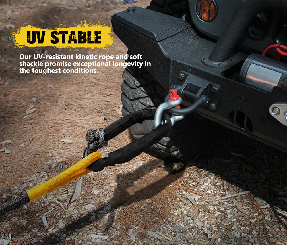 • UV Resistant: Our UV-resistant kinetic recovery rope and soft shackle ensures exceptional longevity, standing strong even in the harshest conditions.