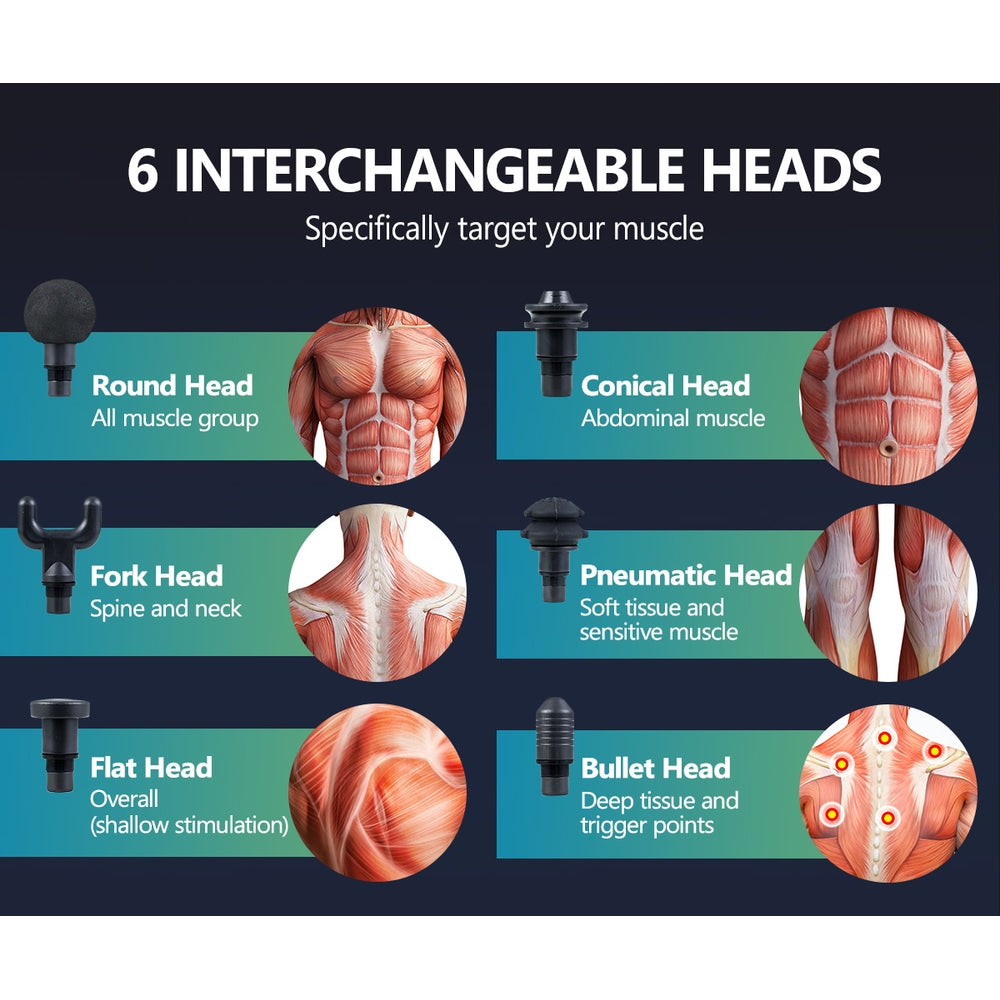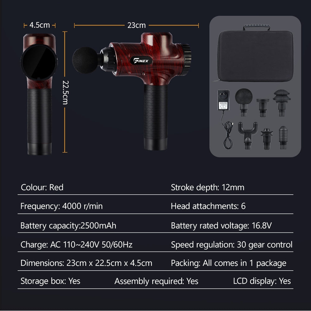 Finex Massage Gun 6 Heads LCD Percussion Vibration Muscle Therapy Deep Tissue