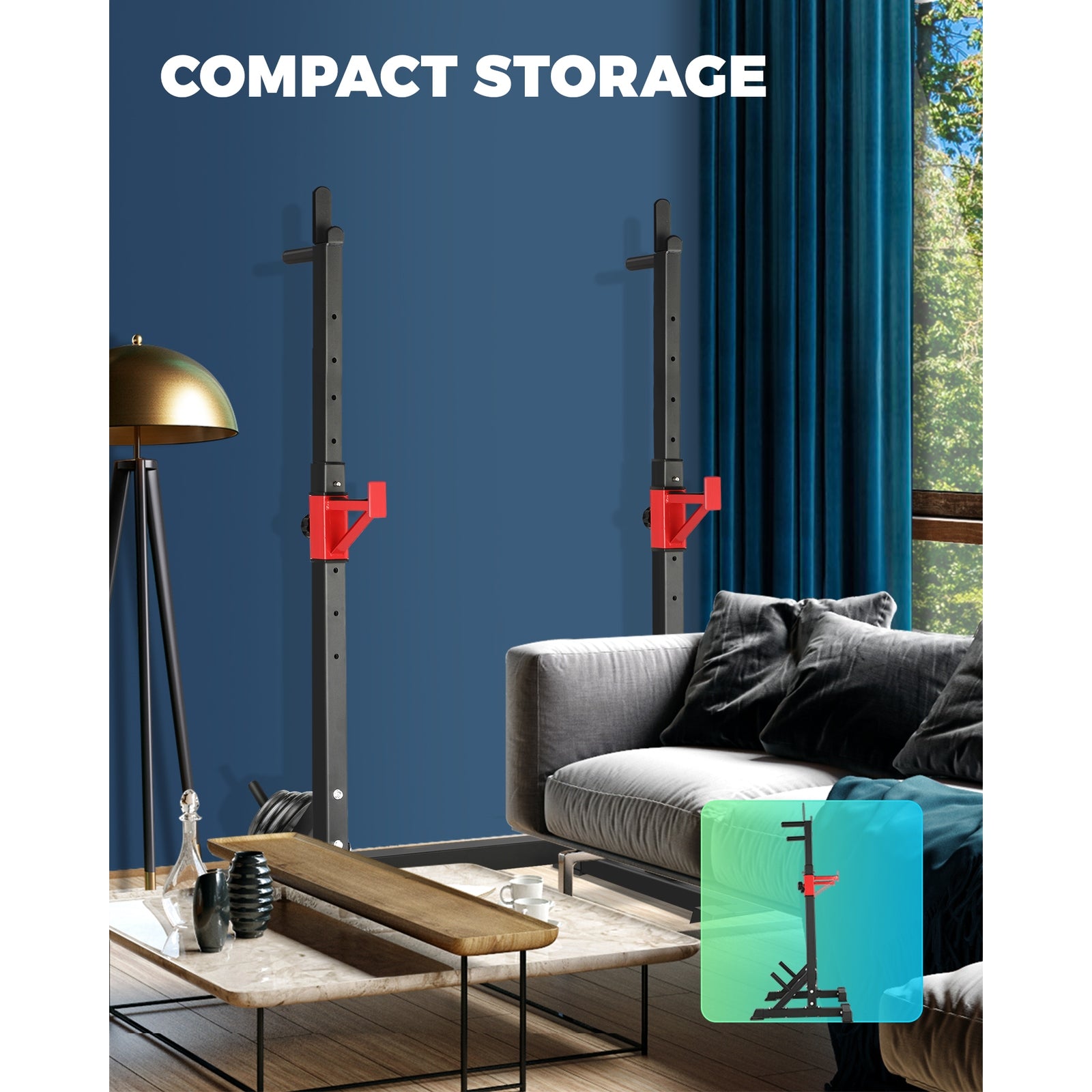 The Finex Squat/Barbell Rack lets you push yourself beyond your limits with ease. Set your training goals and customise the rack to meet those targets. Along the way, you can also boost your muscles and tone your body to perfection. Rated up to 300kg in weight capacity, the squat/barbell rack is certainly no push over and can be adjusted for height to suit your rig. The black powder-coated steel frame is built with a flawless finish that would make any home gym proud and impressive. Better still, you van also pair the rack with an FID bench (available for separate purchase in-store) to double the impact of your training regime. Plus, the entire rack is made to handle rigorous use with a T-shaped base, dual reinforced brackets, and anti-slip capped feet to match your workout intensity. And when the training is done, the rack can be easily folded away for compact storage. The Finex Squat/Barbell Rack. Get tough with one today.