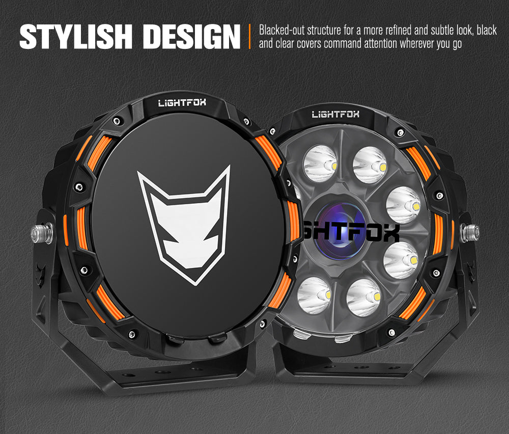 Our laser driving lights provide unparalleled long-range illumination, allowing you to see far ahead and detect potential hazards. As the sun sets, you can rest assured knowing that you have a powerful set of laser driving lights mounted on your rig, illuminating your path with unwavering brightness. With central Osram laser module and Osram LED chips, Lightfox Meteorx laser LED driving spot lights provide an impressive beams. And their 5,000 Kelvin lighting helps reduce eye fatigue and provides optimal visibility. With AkzoNobel powder coating, our laser LED driving lights are built to withstand UV exposure & corrosion. The IP68 rating ensures they're impervious to water ingress, and the 12mm thick die-cast aluminum brackets ensure durability, making rupture a thing of the past. With their attention-grabbing black and clear covers, our laser LED driving spot lights are sure to turn heads wherever you go.