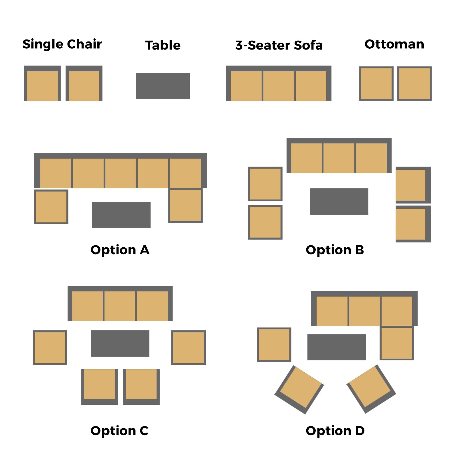 The Livsip 5-seater Outdoor Sofa Set features a modern and clutter-free design that ensures form and function blend perfectly with a timeless appeal. Made of durable fir wood, the heavy-duty framework is exceptionally flawless with smooth touches and visible grains that many will appreciate. Finished in a coat of SGS-tested clear varnish, the entire frame is also appropriately protected against the outdoor elements. The wide and spacious seats comprise 12cm thick cushions that offer ample comfort and support with every sitting while the backrest pillows are equally resilient and comfortable with 10cm thickness. Better still, all the covers are water-resistant and can be easily removed for washing for hassle-free maintenance. Entertaining is also made so much convenient with the matching coffee table that is also beautifully finished to complement the entire ensemble. Plus, the movable ottoman lets you add or subtract to the setting to suit arrangement requirements.