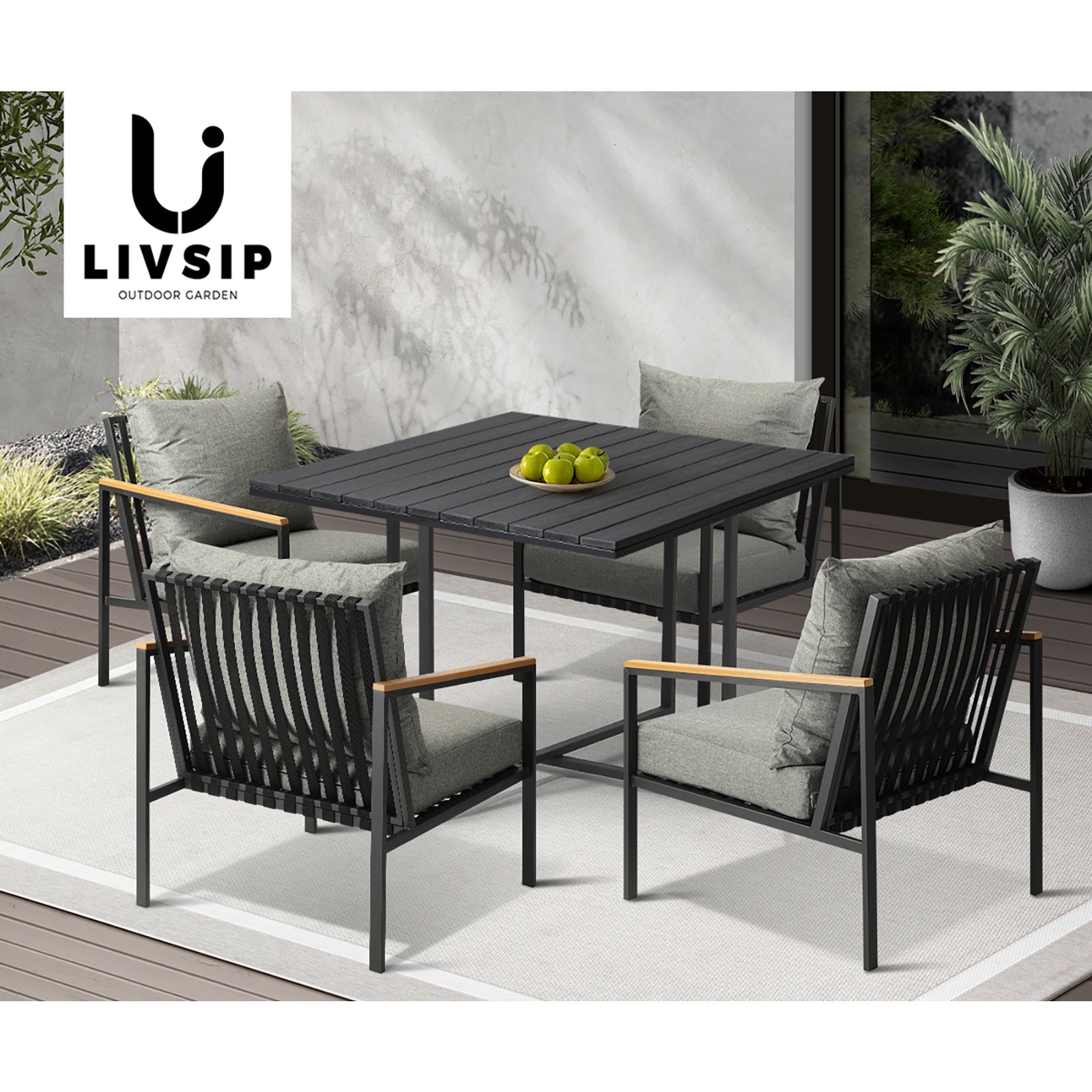Livsip Outdoor Dining Set Black Table and Chairs 5PCS Patio Furniture Setting