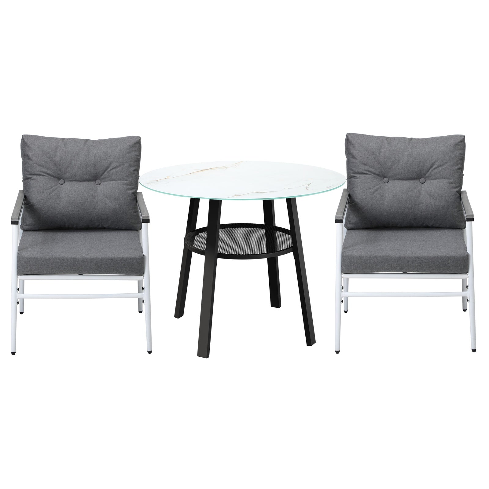 Livsip Outdoor Dining Set Patio Furniture 2 Seater Marble Tempered Glass Table