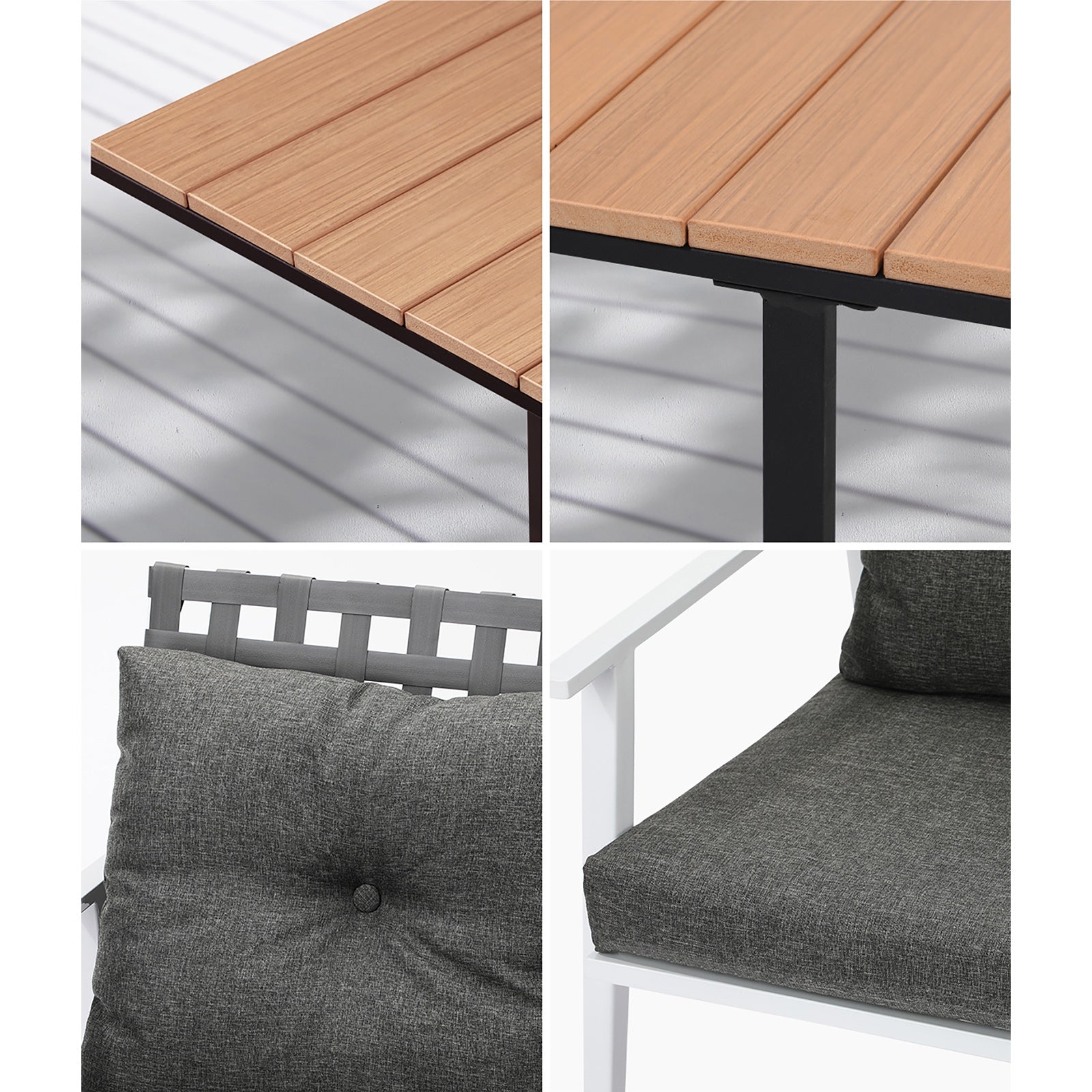 Living life to the fullest. Chilling out under the sun, moon and stars. Alfresco dining with friends, family or just with your precious me-time. Simply pursuing and enjoying life that is meant to be. And the Livsip Outdoor Dining Set is ready to be there at home with you. Stylish. Contemporary. Beautiful. For the dining table, a white ceramic tempered glass top with handy storage shelf beneath. And for the dining chairs, equally attractive pieces that go well with the table. The set has all the attributes of chic outdoor furniture that resonate with your discerning lifestyle. Have your lattes, your favourite brews and savour delectable cuisines and other gastronomical delights. Eat, drink and be merry! But how does the dining set stand up to the harsh and sometimes fickle Australian weather? No worries mate as it is all weather-resistant, chairs and table, with strength and durability for robust use.