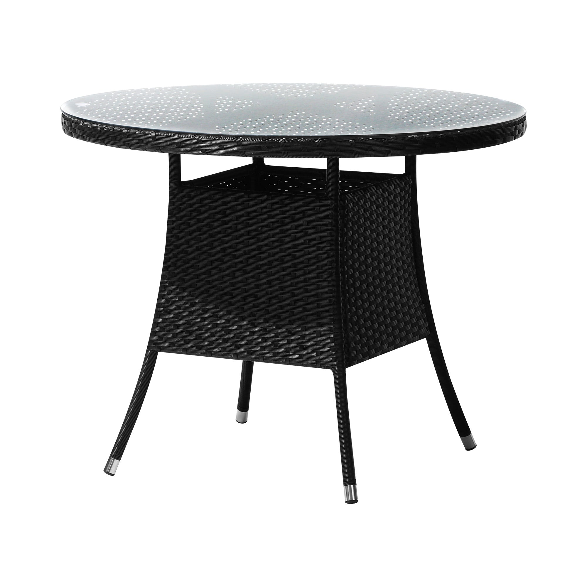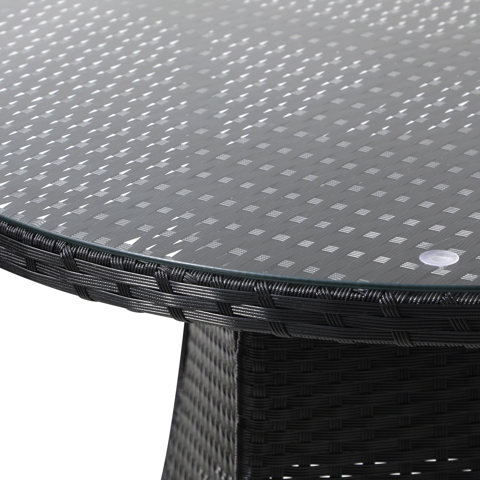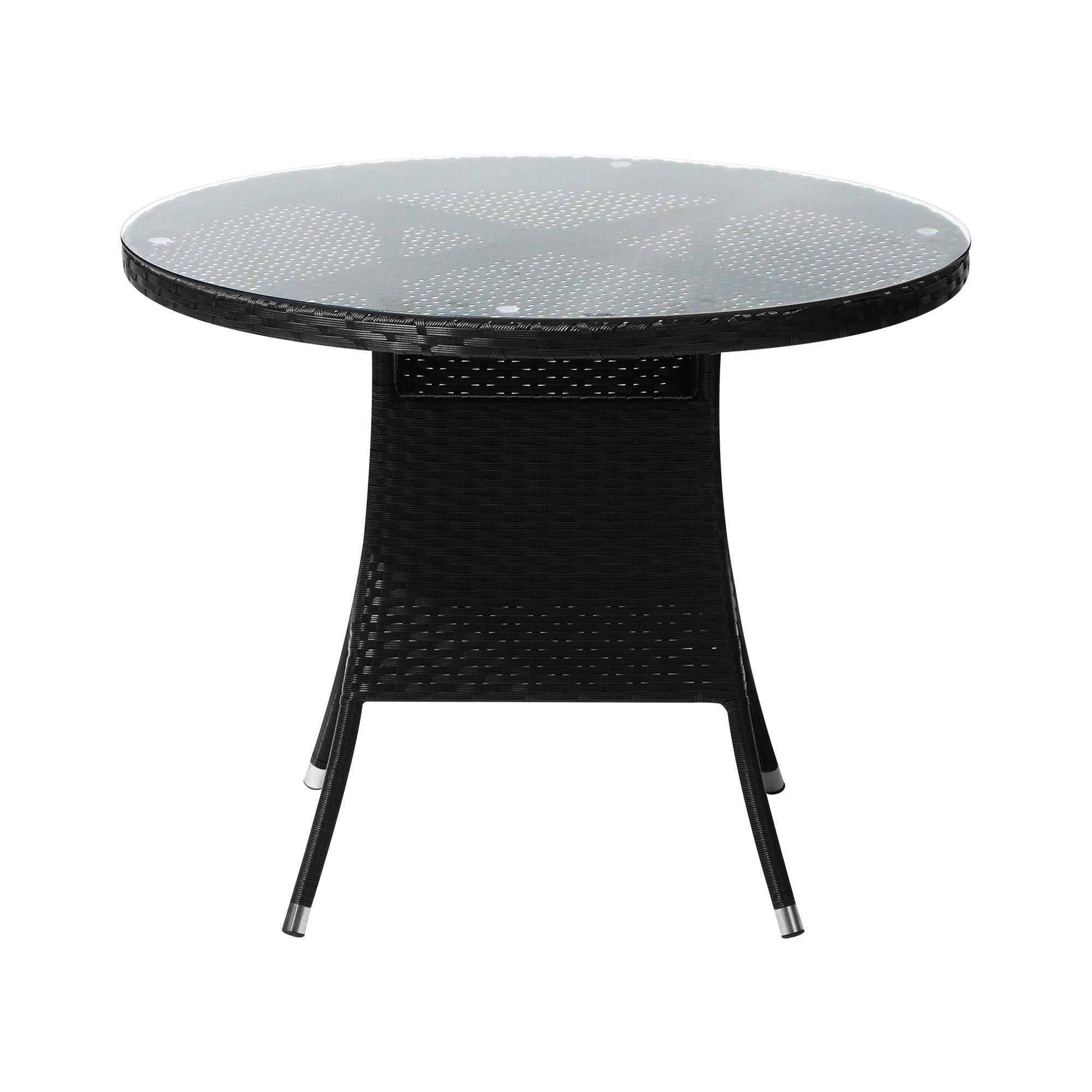 Livsip Outdoor Dining Table 90CM Round Rattan Glass Table Patio Furniture Black