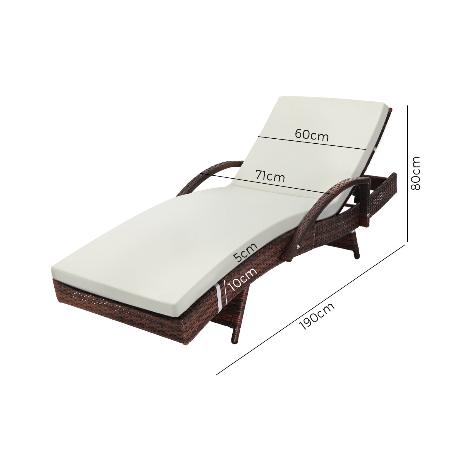 Look forward to the summer days for a relaxed sunbathing or lounging under shade with our Livip Outdoor Sun Lounger. It is well crafted with a lightweight aluminium frame that is coated with 7 layers and paired with UV treated PE wicker and waterproof cushion cover. The adjustable backrest makes it easy to spend all day under the summer sun -you can lay flat, read a book, enjoy a drink for hours by adjusting it to your comfort angle. This piece combines a sleek finishes and angular design for a modern touch, it is a great addition to your outdoor furniture range. Complete your outdoor relaxation area with our Livsip lounge setting, swing chair and garden bench.