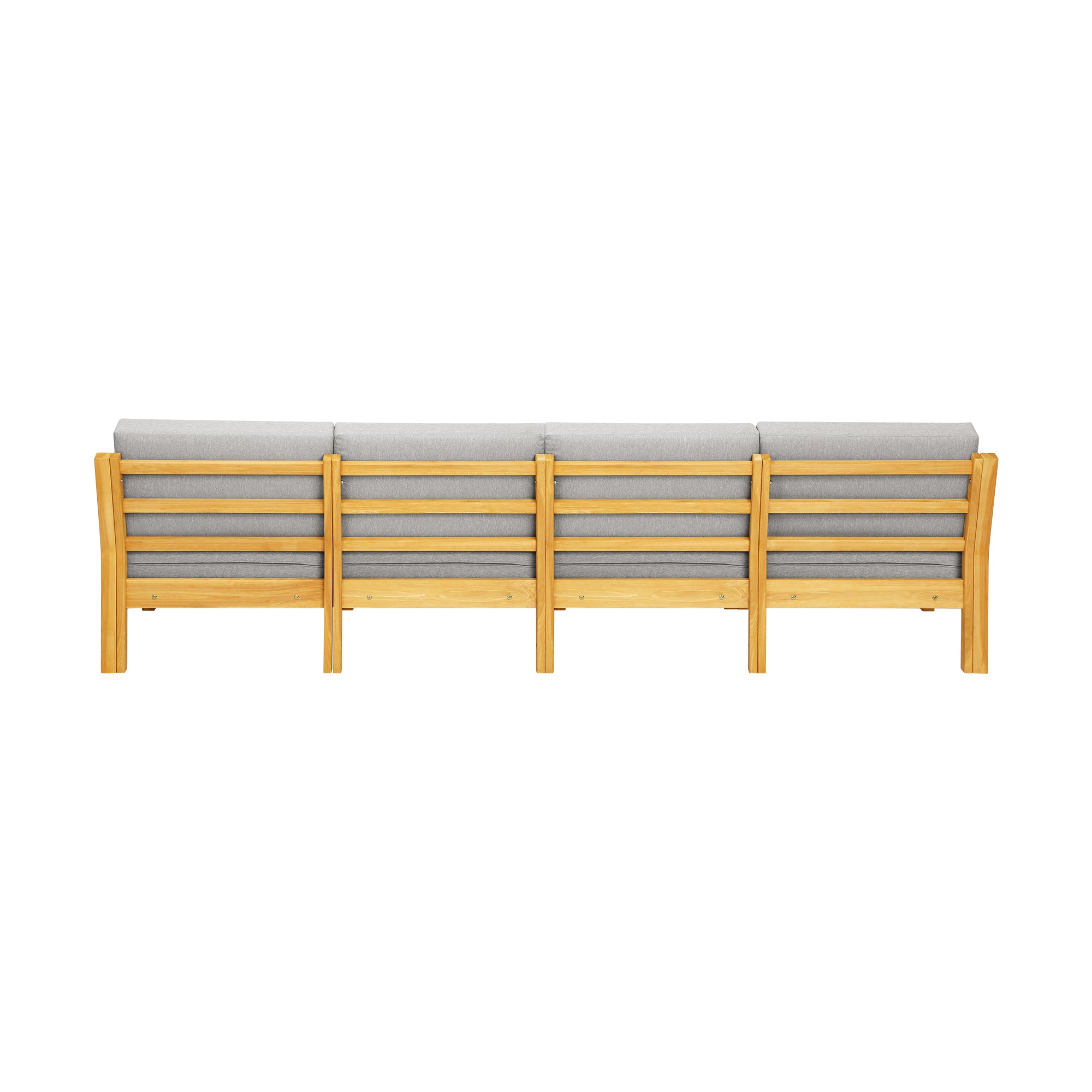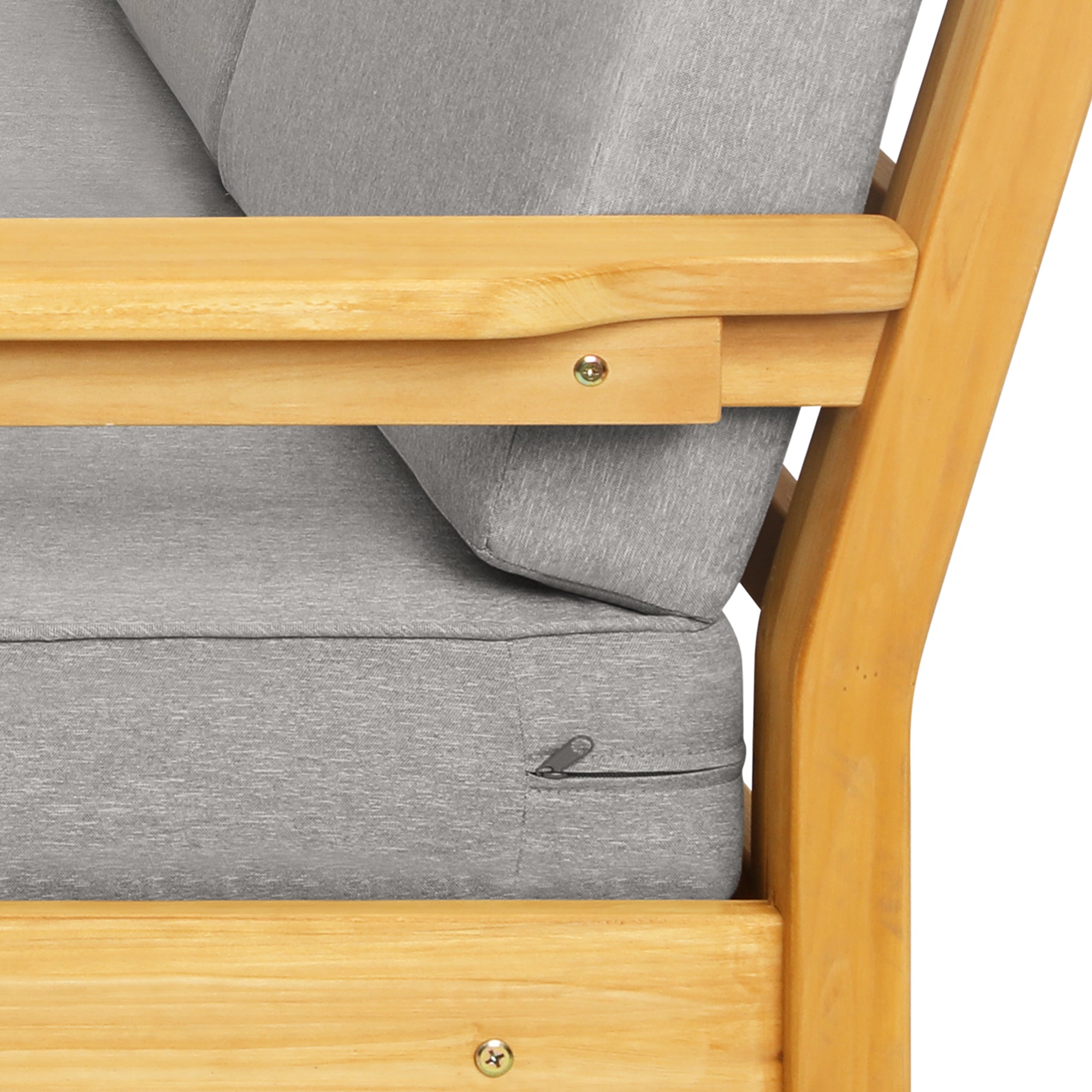 The Livsip 4-seater Outdoor Sofa Set features a modern and clutter-free design that ensures form and function blend perfectly with a timeless appeal. Made of durable fir wood, the heavy-duty framework is exceptionally flawless with smooth touches and visible grains that many will appreciate. Finished in a coat of SGS-tested clear varnish, the entire frame is also appropriately protected against the outdoor elements. The wide and spacious seats comprise 12cm thick cushions that offer ample comfort and support with every sitting while the backrest pillows are equally resilient and comfortable with 10cm thickness. Better still, all the covers are water-resistant and can be easily removed for washing for hassle-free maintenance. Entertaining is also made so much convenient with the matching coffee table that is also beautifully finished to complement the entire ensemble. Plus, the movable ottoman lets you add or subtract to the setting to suit arrangement requirements.