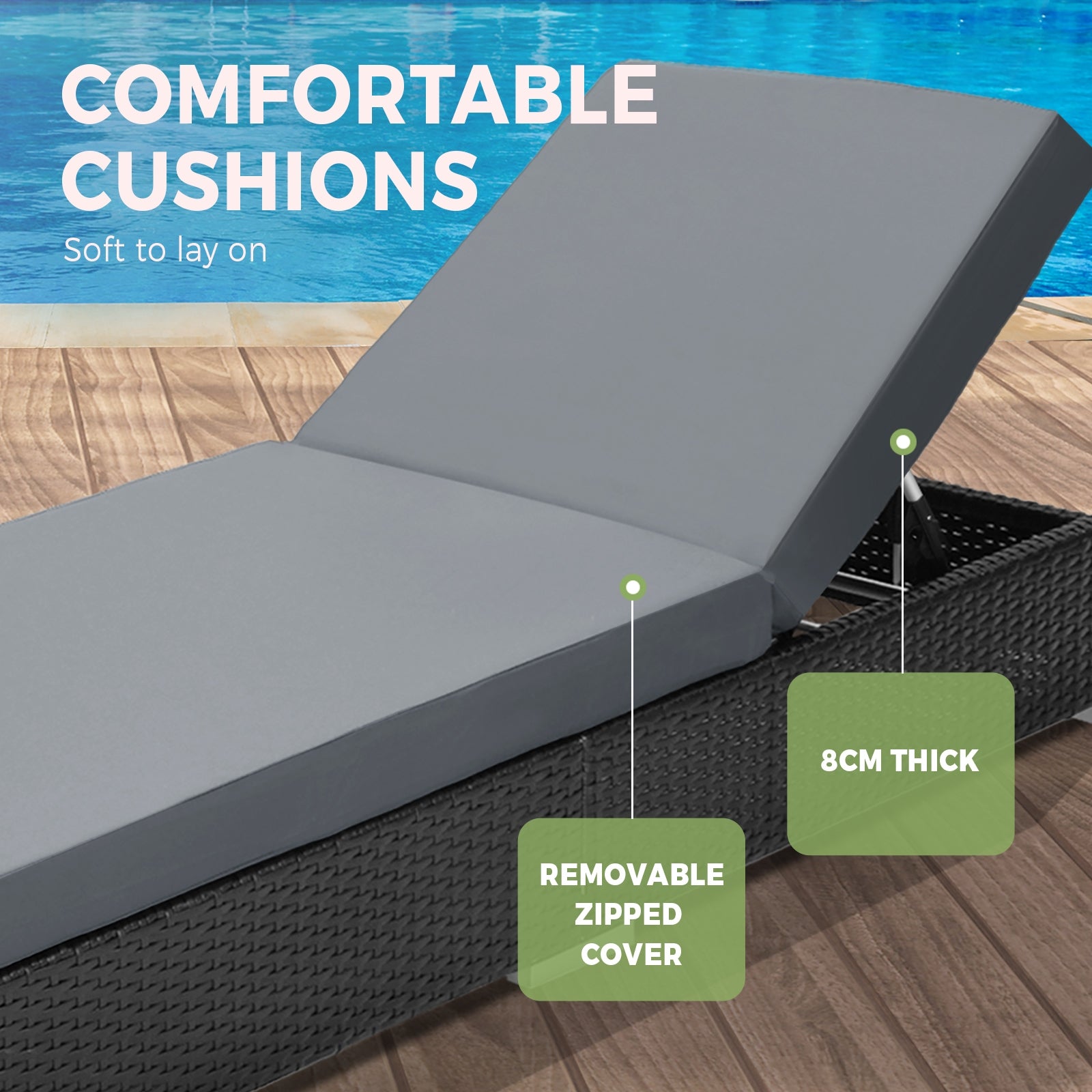 Livsip Sun Lounger Outdoor Furniture Rattan Wicker Lounge Garden Patio Sofa 2X