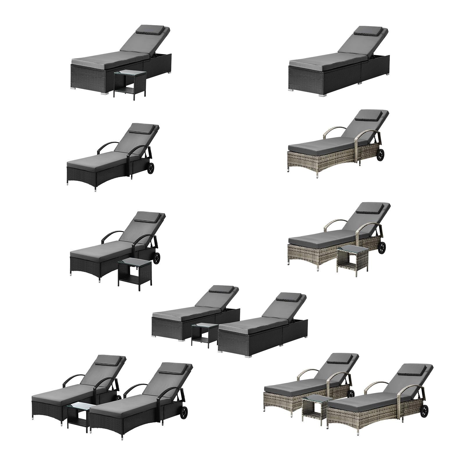 Livsip Sun Lounger Wicker Lounge Day Bed Table Outdoor Setting Patio Furniture