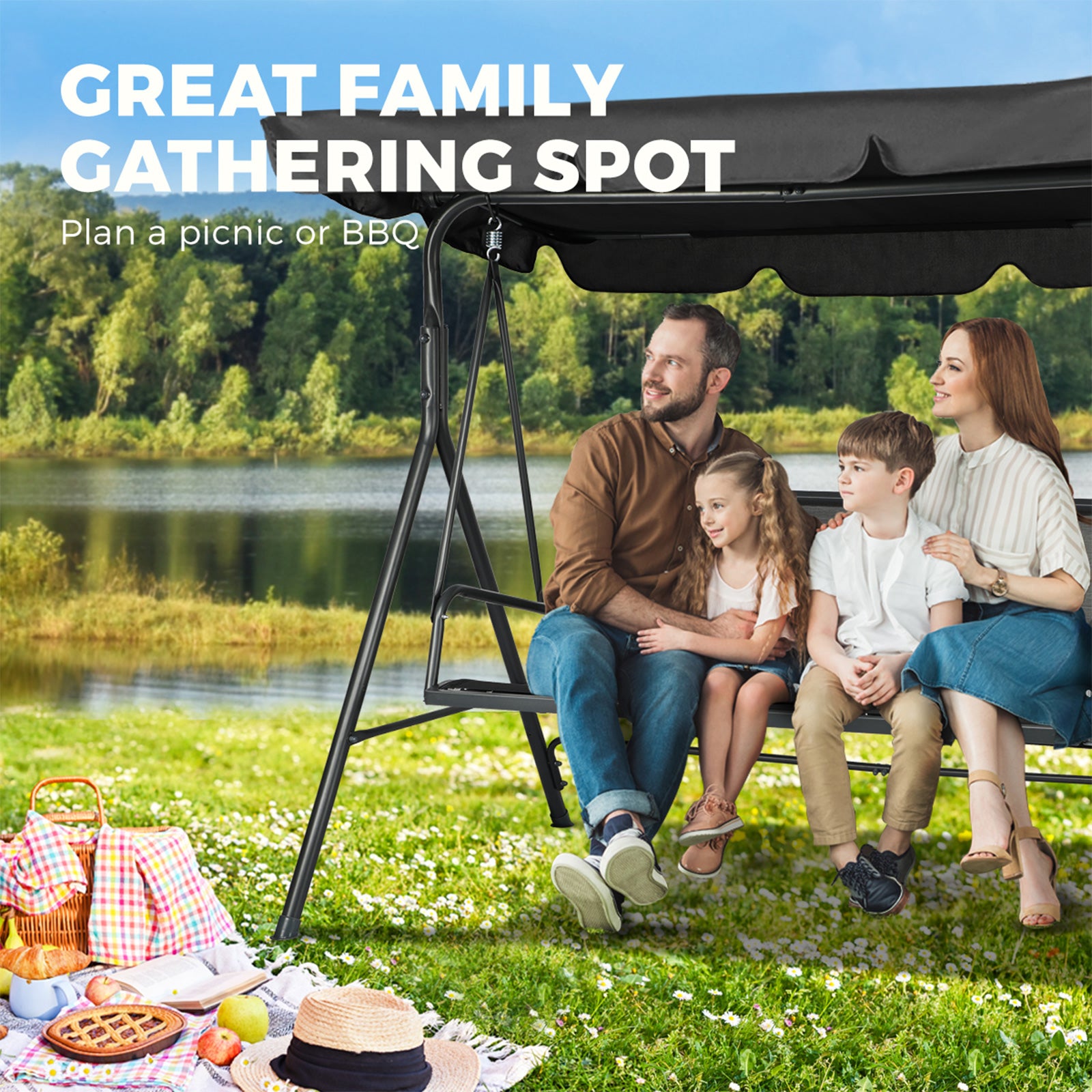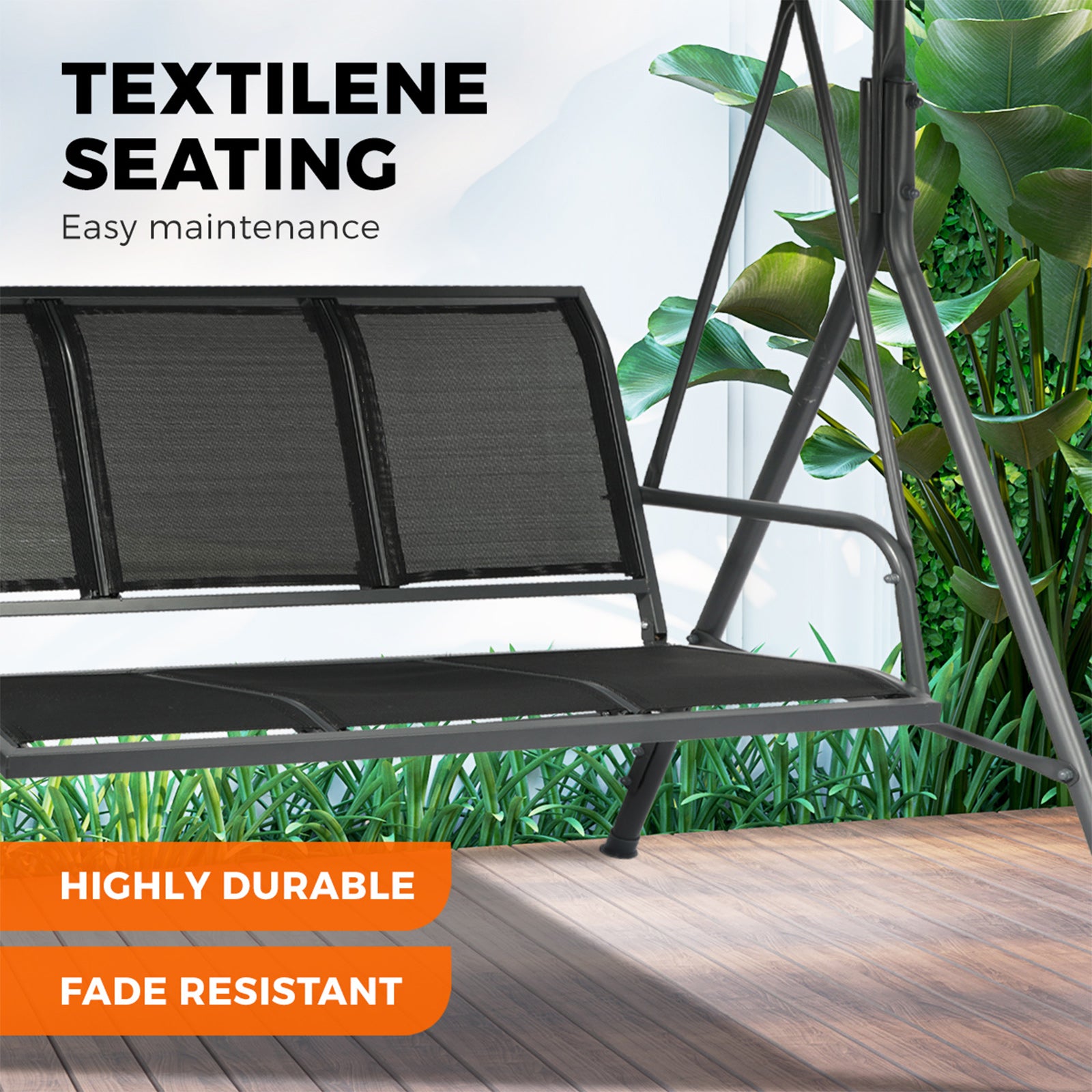 Livsip Swing Chair Garden Hammock Outdoor Furniture 3 Seater Patio Canopy Black