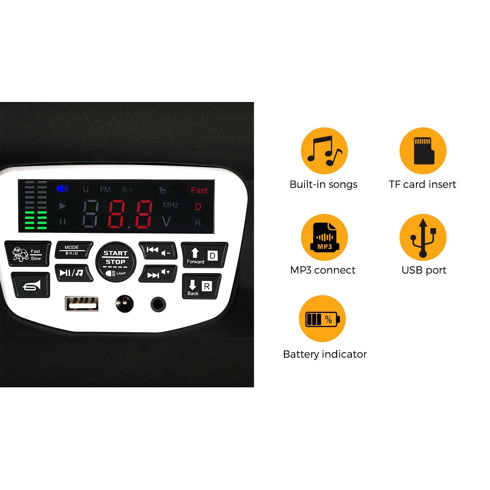 The sculpted design with the iconic grille, striking headlights, big and wide tyres and a search light all indicate that this ride car is ready to provide thrilling enjoyment from the moment go. Powered by twin 12V 60W motors, the ride on car can run at speeds of 3km/h to 8km/h (depending on weight with a maximum weight capacity of 30kg) with ease. In car entertainment and riding control are also provided with an easy-to-use dashboard that includes a one-button start, light controls, horn button, high/low speed selection, forward/reverse motion, charging port, and MP3 connect for even more musical enjoyment. with a safety belt provided for use, door safety lock, and a 3-speed remote control that overrides the manual controls of the car should junior gets a bit too enthusiastic (who can blame him or her) with the ride.With its EN71 safety rating for toys, the Mazam Ride On Car is assured of quality and reliability always.