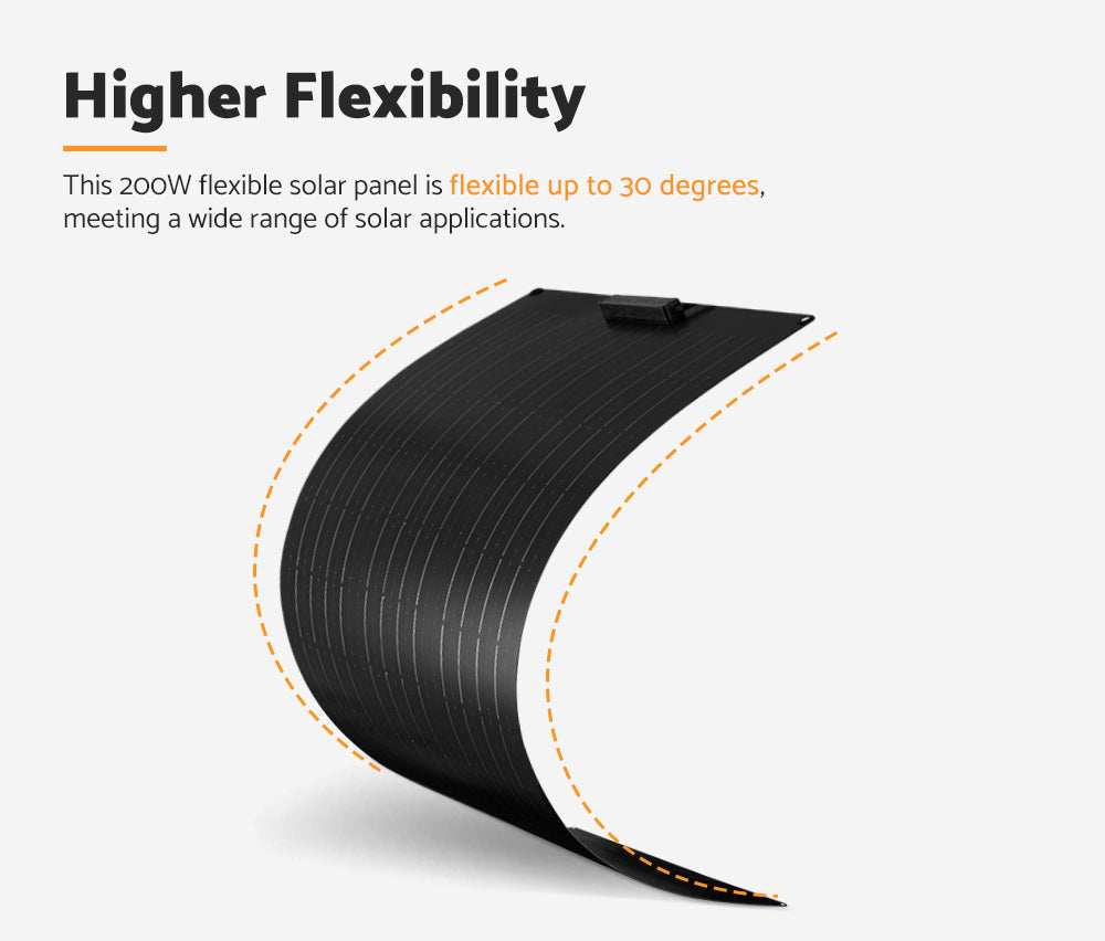 MOBI 200W Flexible Solar Panel Mono Cells 12V RV Boat Caravan Camping 4WD