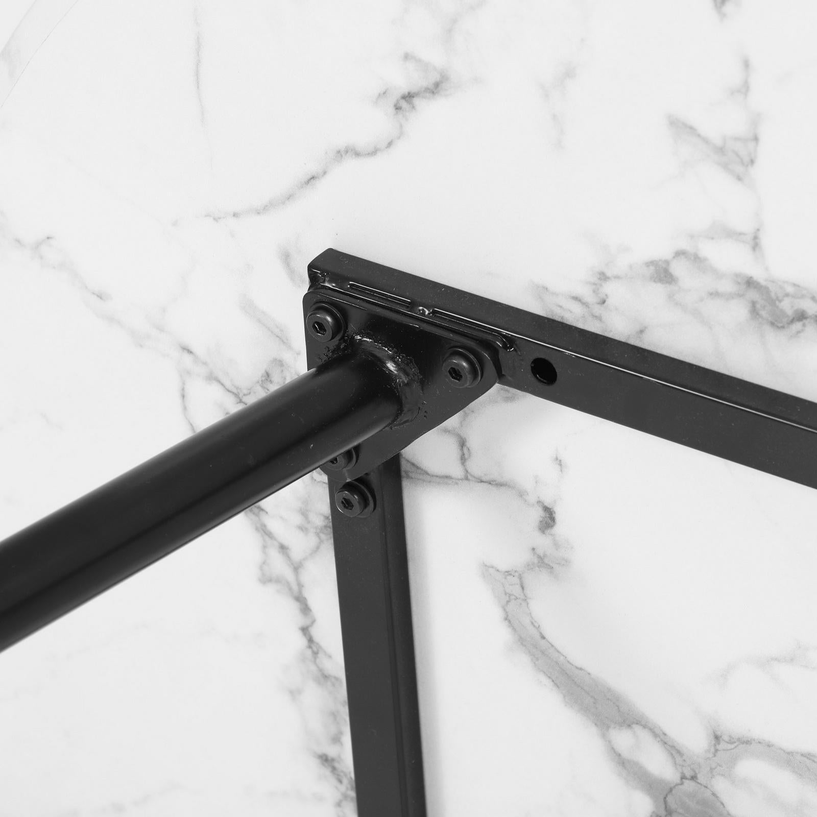 Oikiture 110cm Dining Table Round Wooden Table With Marble Effect Metal Legs WH