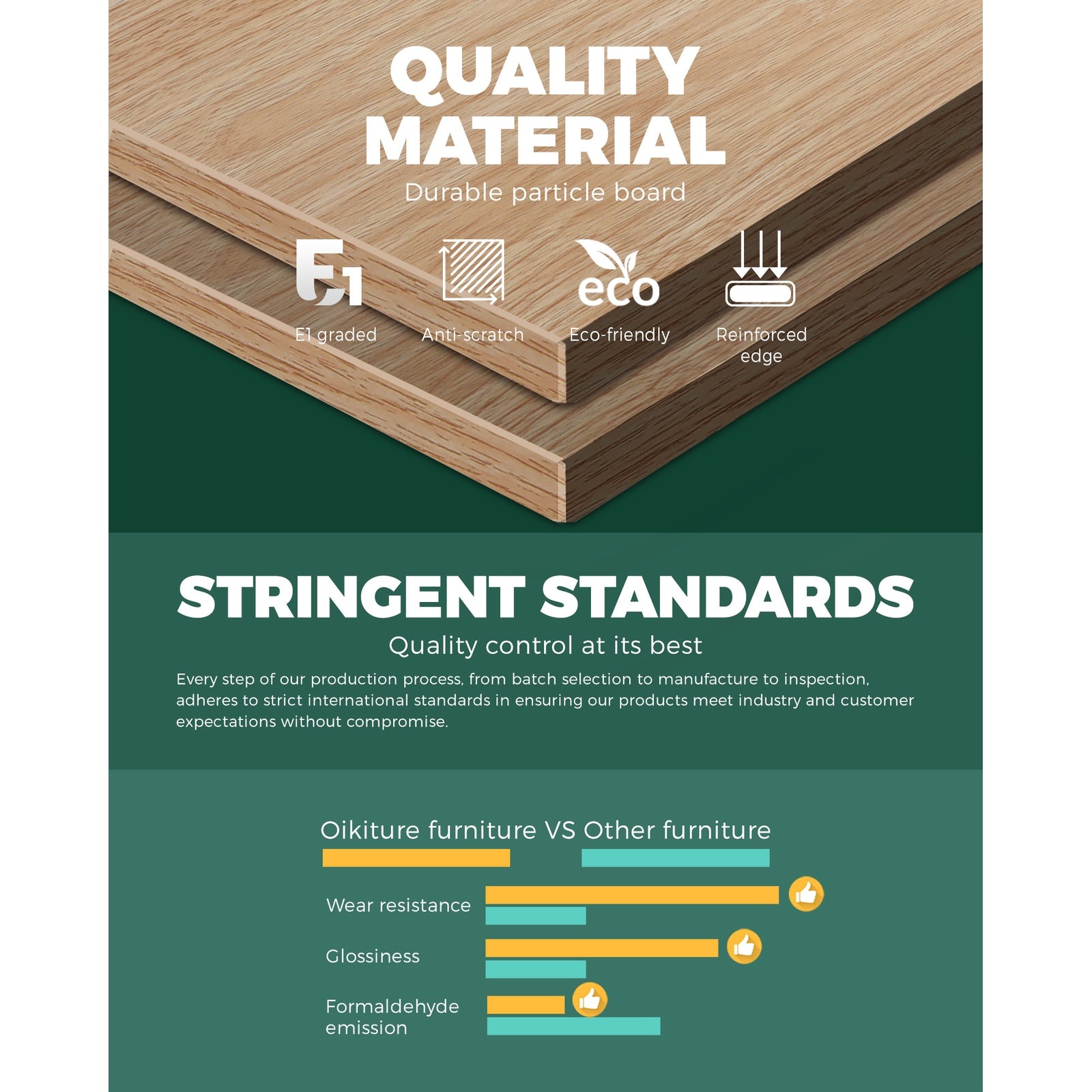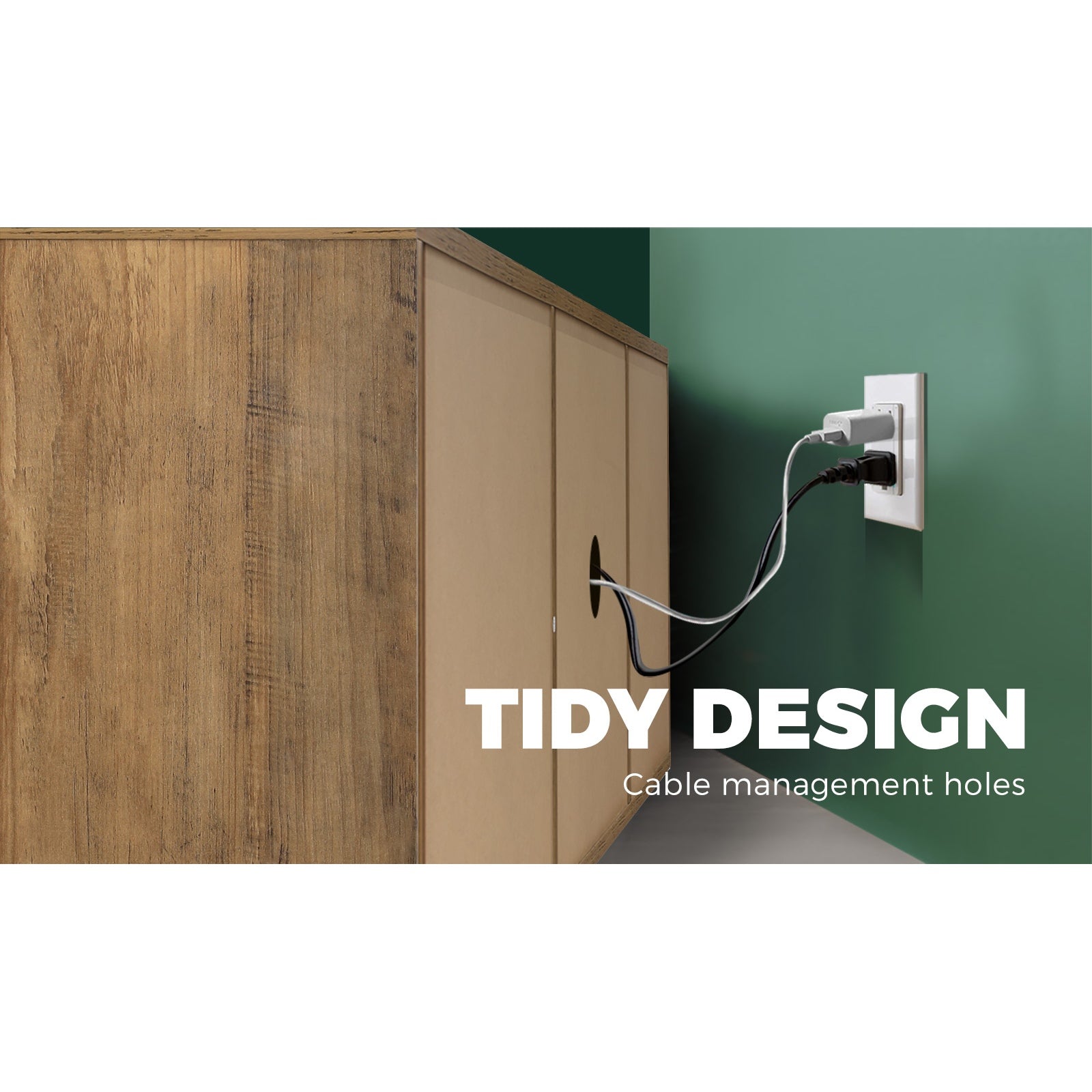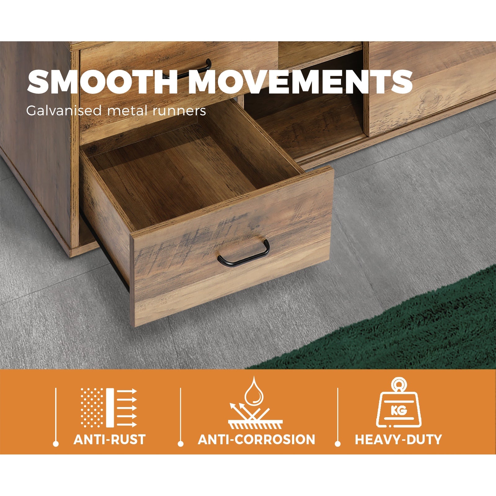 Restyle your home with our Oikiture Entertainment unit that gives you endless versatility. You can use it to dress up your living room or dress down your bedroom. It is crafted with 3D paper veneer finish that is made for anti-scratches, so you don't need to worry if you have pets or kids lingering around this pretty unit. In term of practicality, it comes with adjustable shelves and 2 drawers to store away household items that you don't want to be seen. To keep up with the trendy look, it comes with a sliding door to let you have a fresh use of the storage behind it. Check out our specifications for more detailed dimensions. Whether you need to underline your TV or create more storage, our Oikiture Entertainment Unit is made to fit the purpose and add class to your living room.