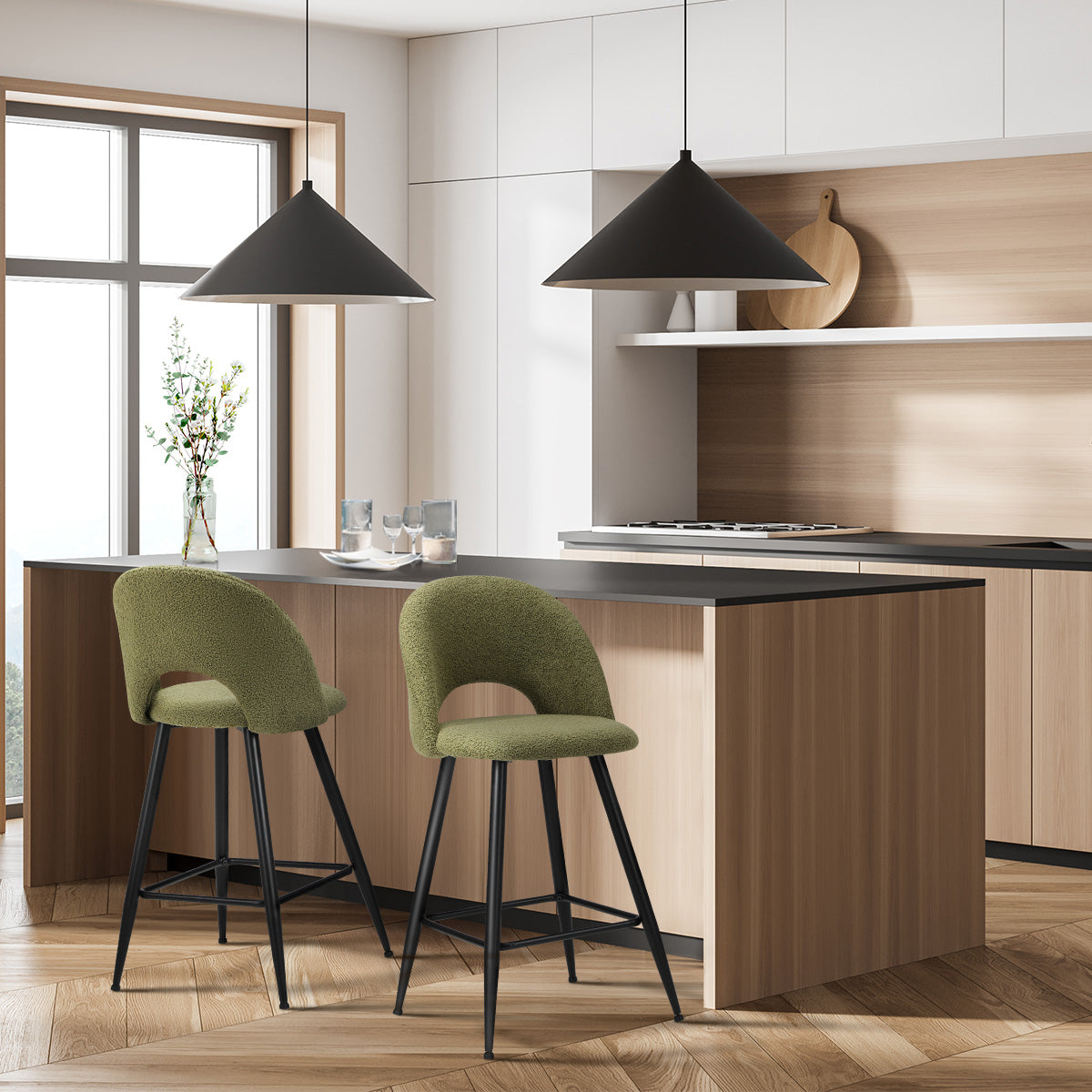 Oikiture 2x Bar Stools Kitchen Counter Stool Dining Chairs Boucle Green HORN