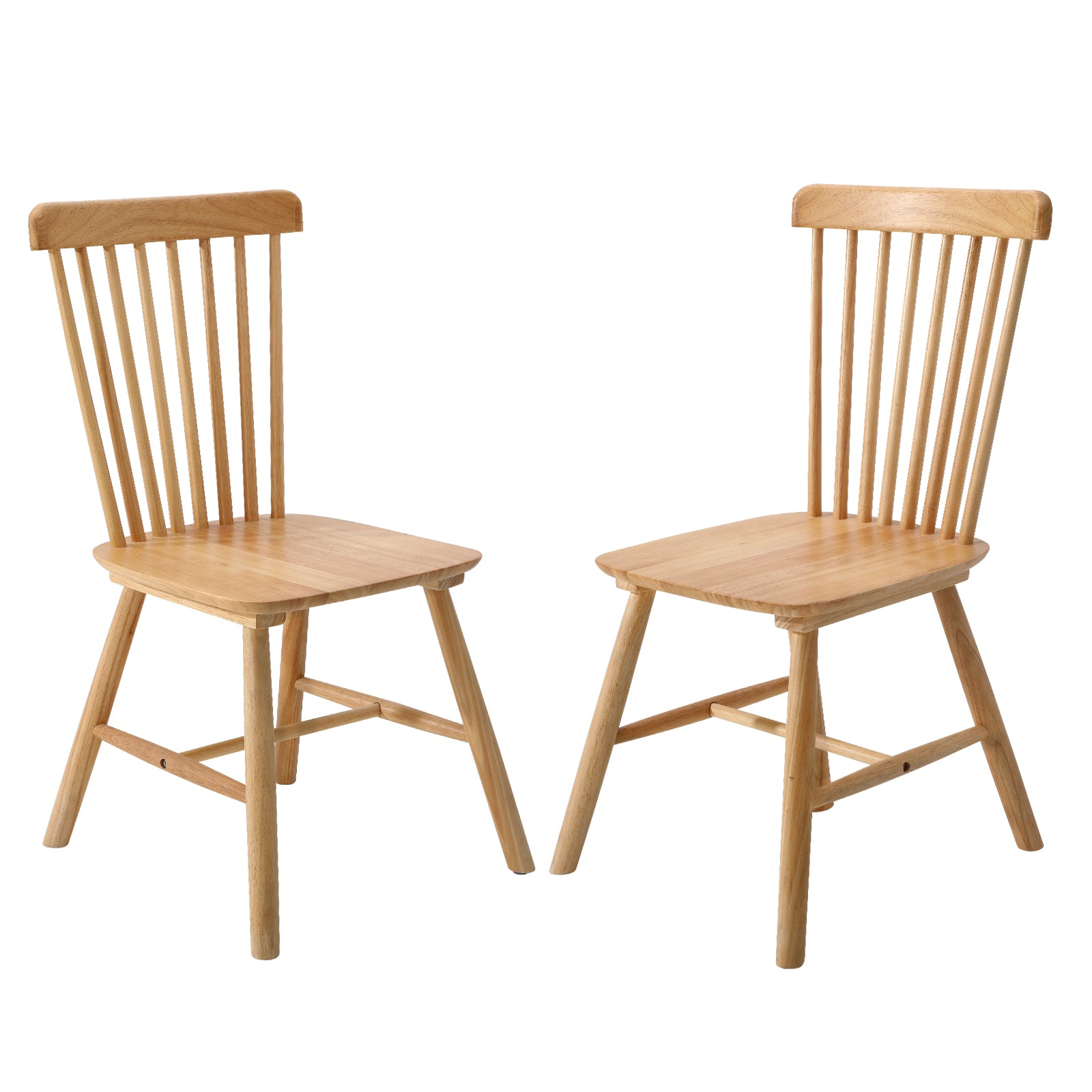 Elevate your dining space with our Wooden Dining Chair Set by Oikiture, featuring a classic spindle back design that seamlessly combines timeless elegance with durability. The defining feature of these chairs is the intricate spindle back design, meticulously crafted with precision. The series of vertical spindles create a visually appealing pattern that not only adds a touch of vintage charm but also offers excellent back support and comfort. These chairs are built from high-quality rubber wood, ensuring stability and longevity. The solid wooden construction not only provides a strong foundation but also adds a warm and inviting element to your dining area. The classic design of these chairs effortlessly complements a variety of interior styles, from farmhouse and rustic to traditional. Their versatility makes them an ideal addition to any dining room, creating a cozy and welcoming atmosphere.