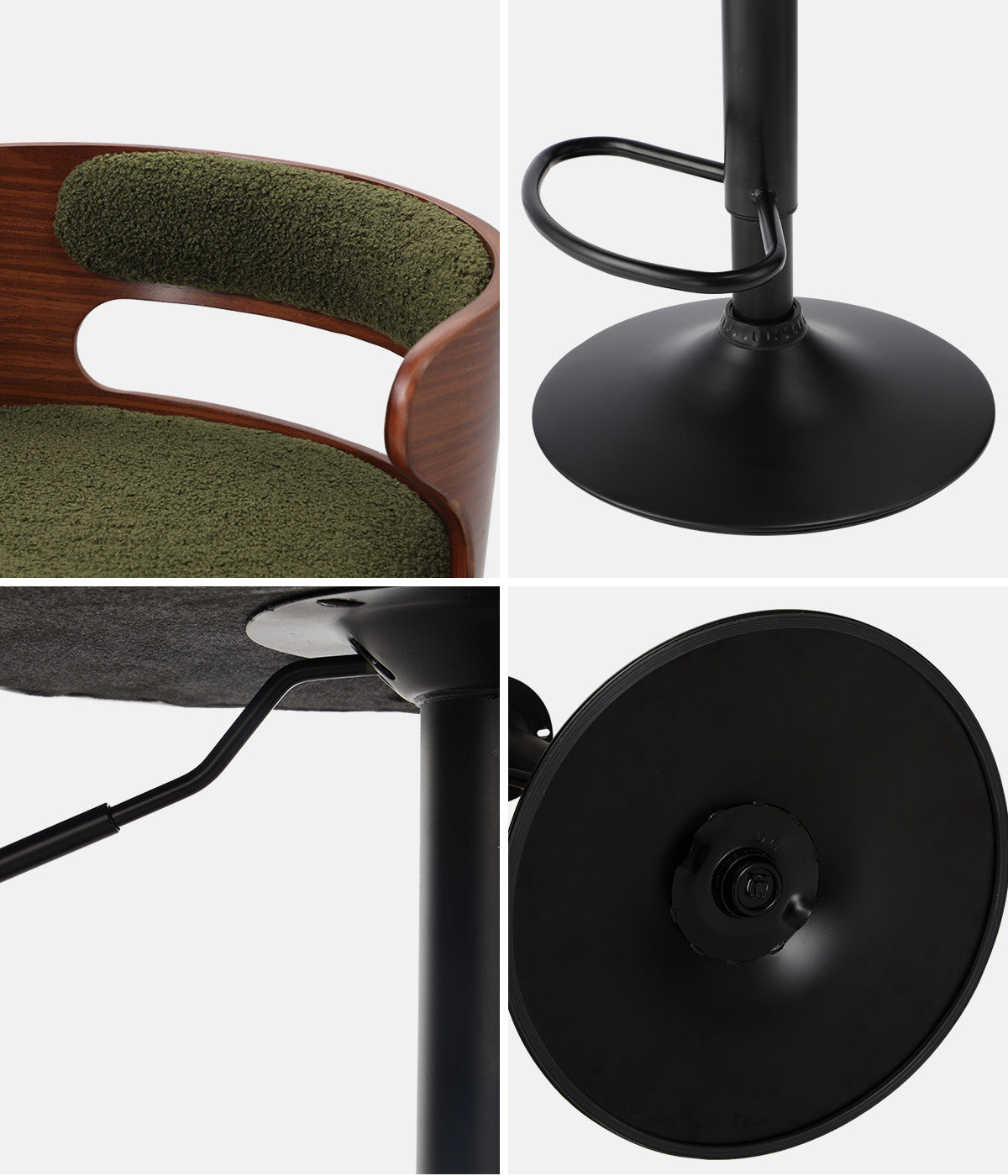 With a combination of solid bentwood and durable steel construction, the bar stool is designed for an outstanding presence. Its a weight capacity of up to 150kg also ensures the bar stool is not a lightweight either. Better still , depending on the model, the boucle fabric upholstered seat is flawlessly finished and padded with rich comfort. Not least, the high backrest also provides ample support while you sit back and chill out. Seat height can be easily adjusted to suit various heights with its SGS-certified gas lift and heavy-duty working mechanism, and the seat can be easily rotated to face all directions. Plus, the crescent footrest makes for even more pleasurable sitting all round. Underneath, the wide metal base provides a firm footing while the floor protector also ensures that your pristine floor is never in danger of damages or scratches with every robust bar stool use.