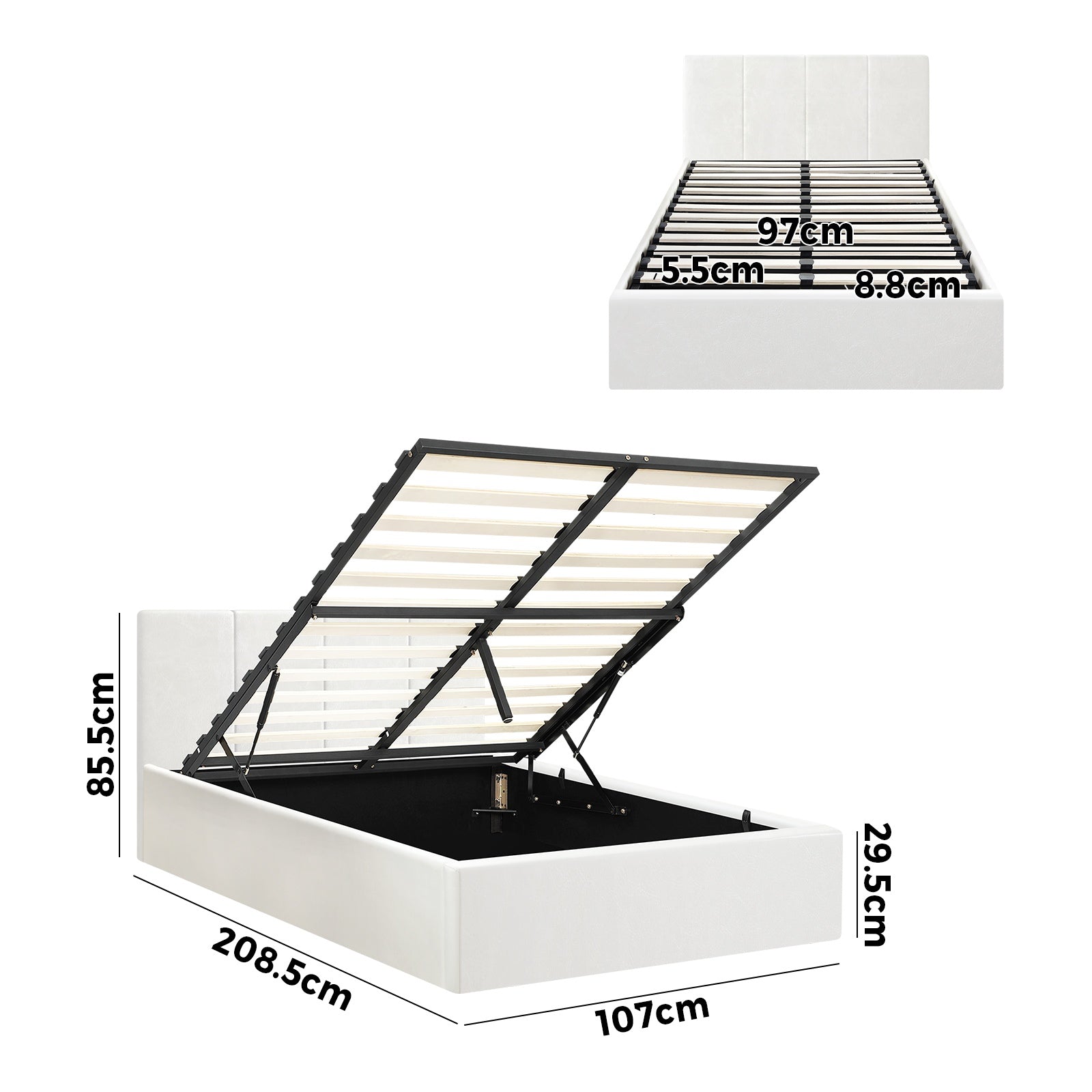 Oikiture Bed Frame King Single Gas Lift Beds Base Storage PU Leather ZOE