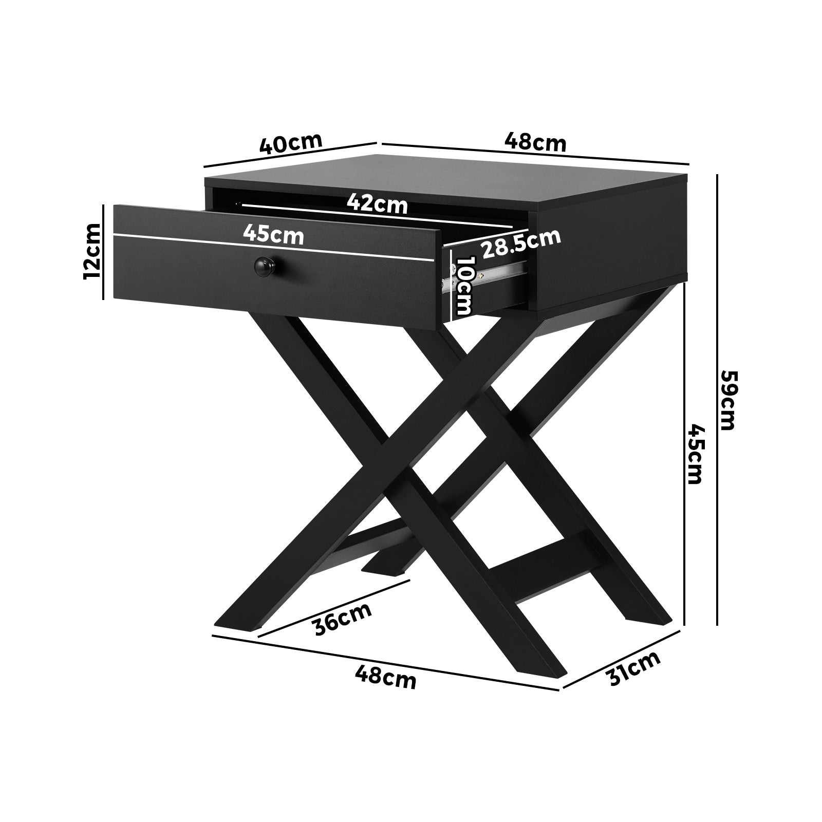 Oikiture Bedside Table Drawer Side Table Black Bedroom Storage Cabinet Furniture