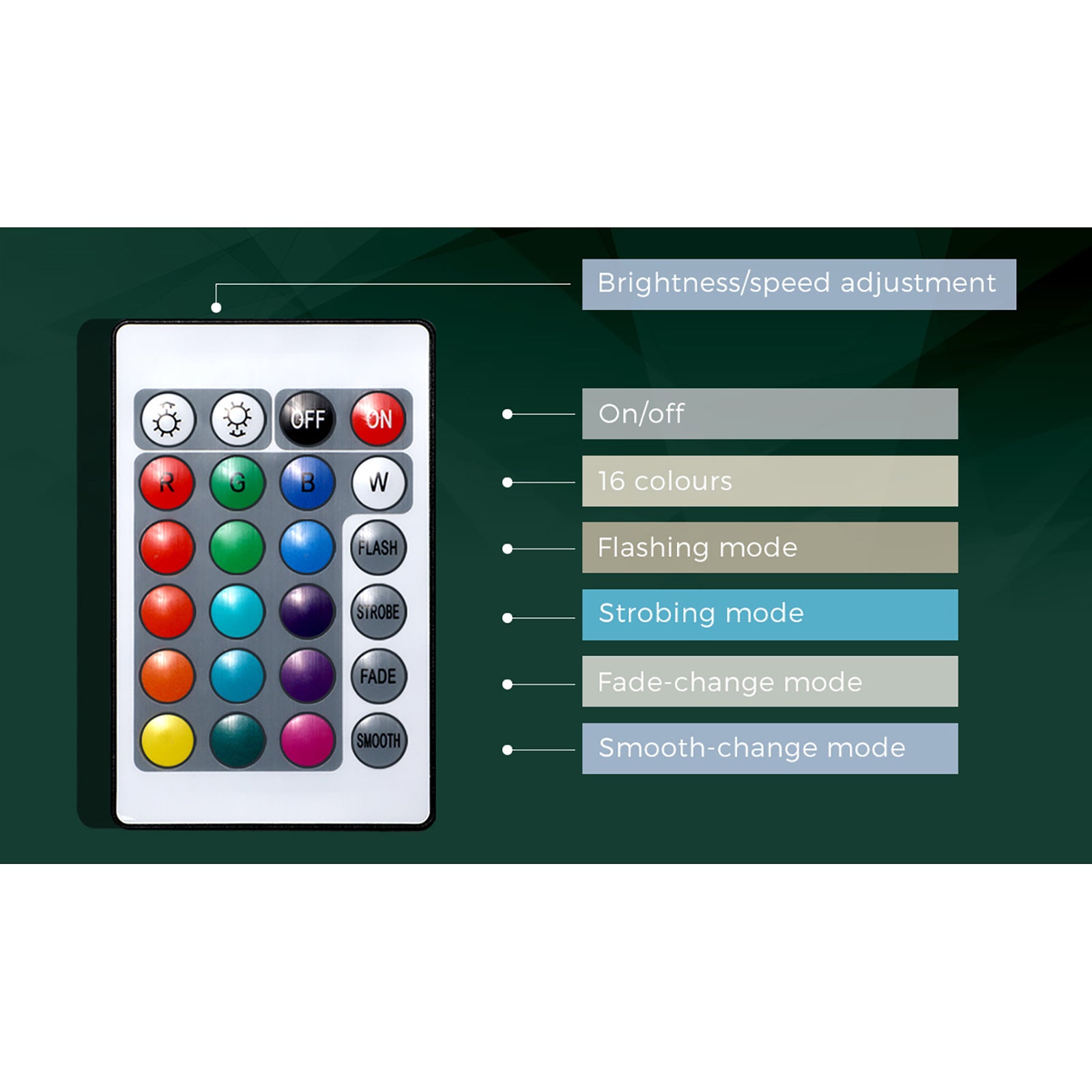 • Note: Please remove the blue protective film after assembly. Point the remote control towards the receiver to operate and customise LED lighting.