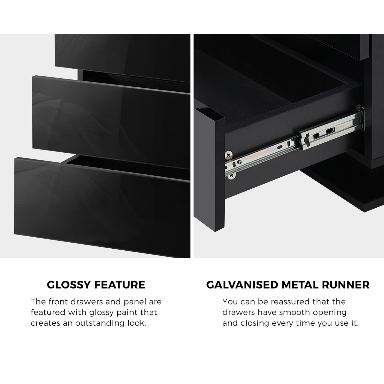 Oikiture Bedside Table RGB LED Nightstand Cabinet 3 Drawers Side Table Furniture