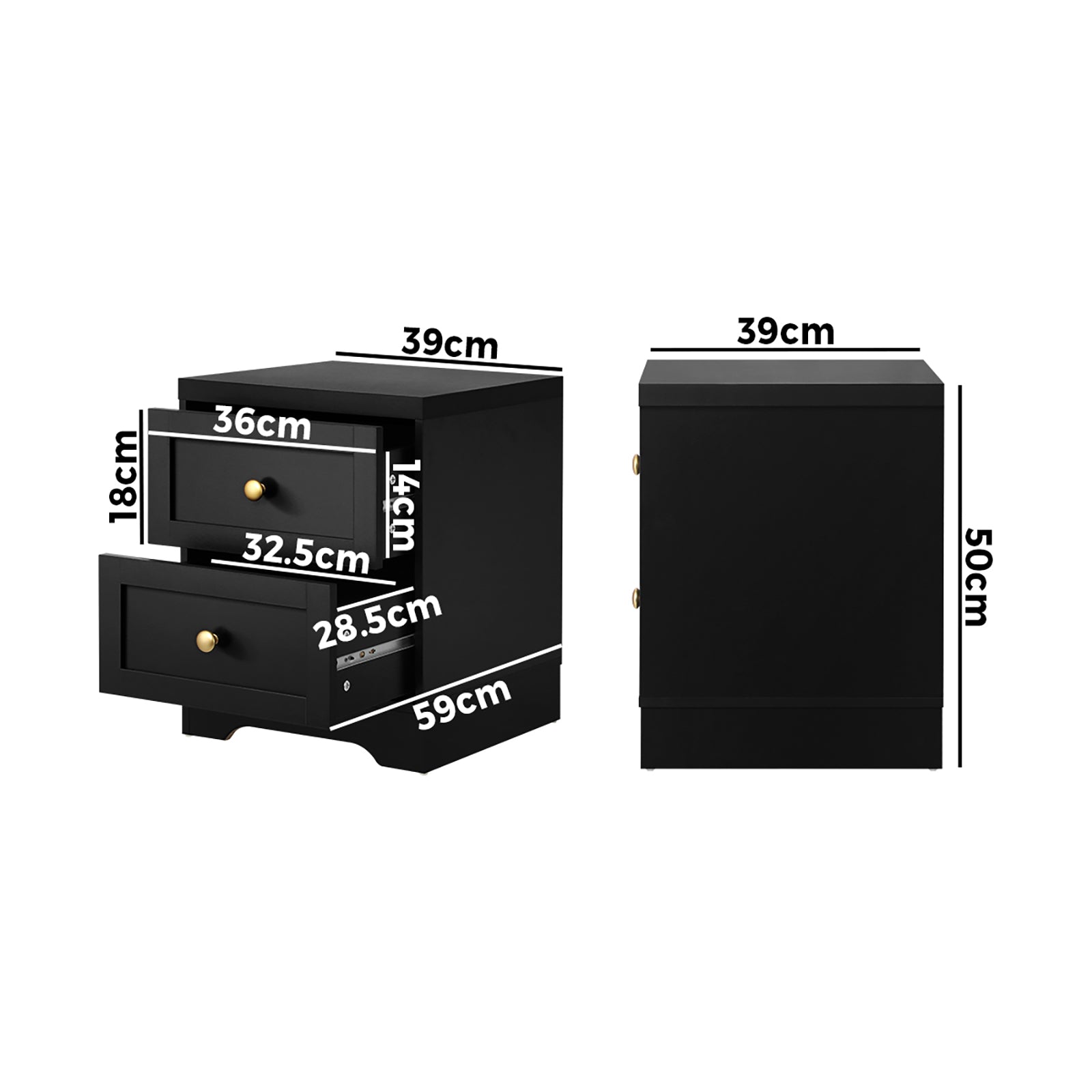 Oikiture Bedside Tables 2 Drawers Hamptons Furniture Storage Cabinet Black