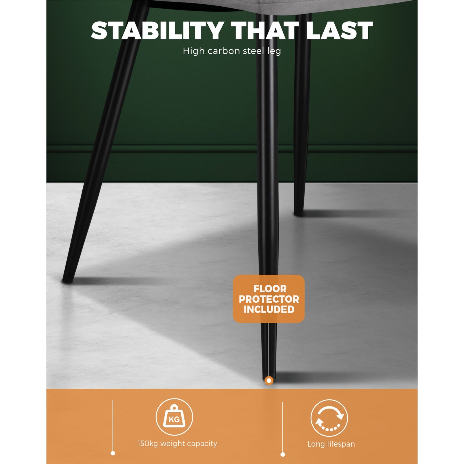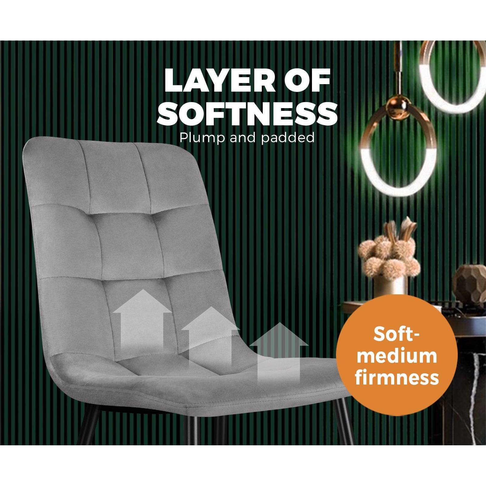 Oikiture Dining Chairs Kitchen Chair Velvet Fabric Padded Seat Cafe Grey x2