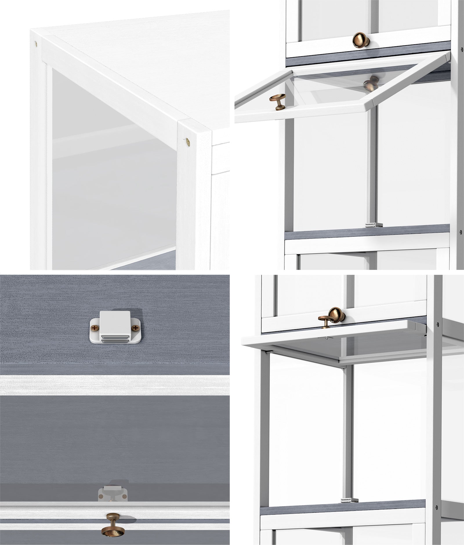 Oikiture Display Cabinet Slim Storage 5-Tier Shelves Clear Bookcase Rack White