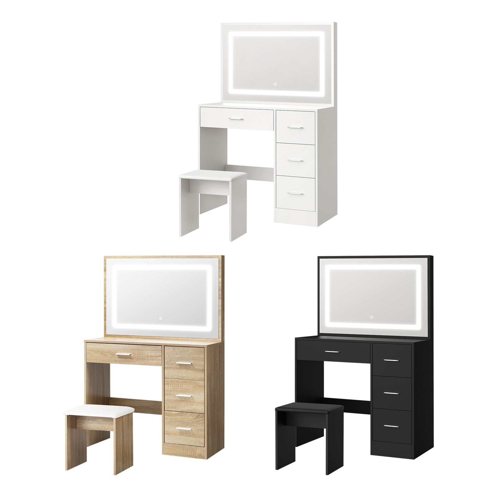 Oikiture Dressing Table Stool Set Large Makeup Mirror LED Light Vanity