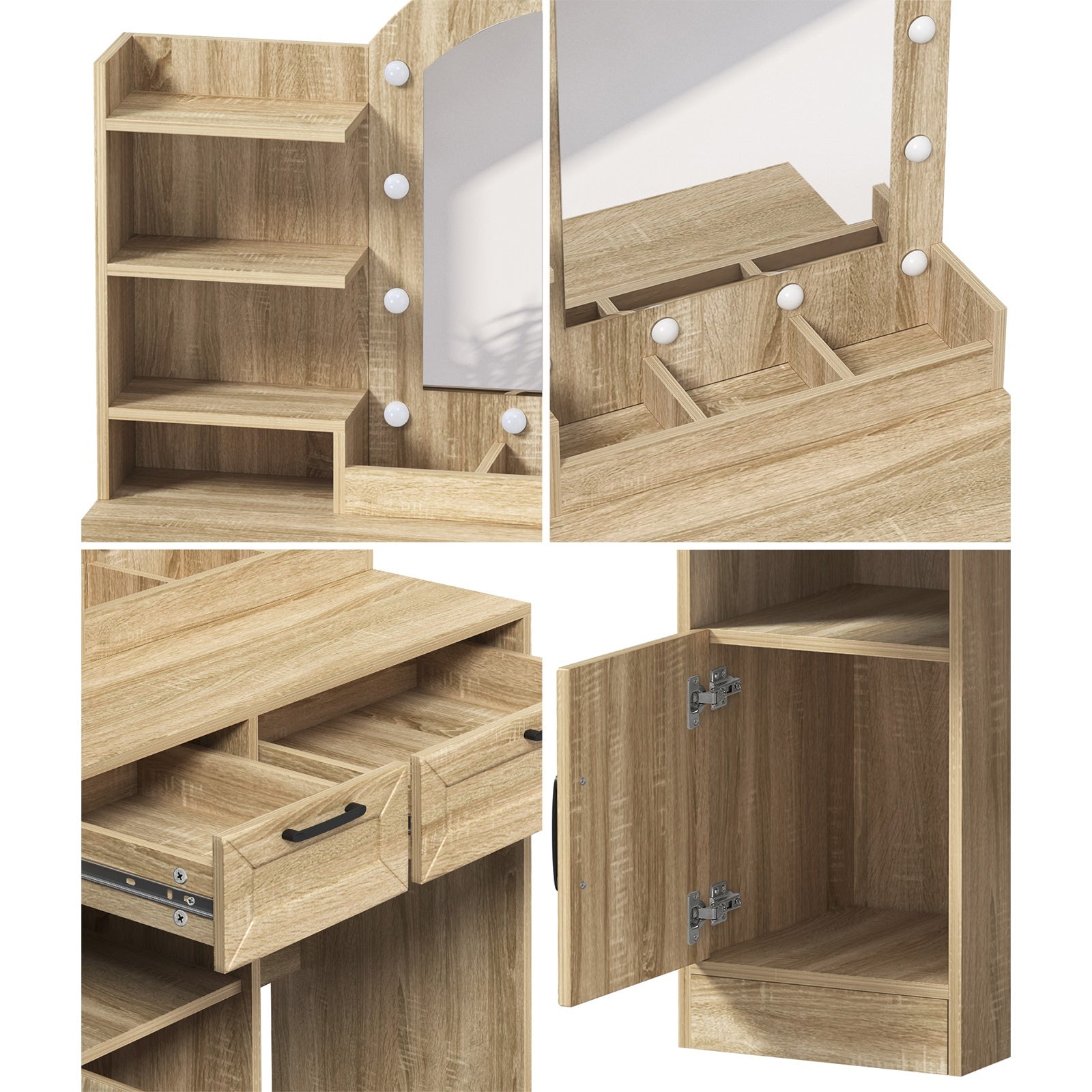 Oikiture Dressing Table Stool Set Vanity Desk Makeup Mirror 12 LED Bulbs Natural