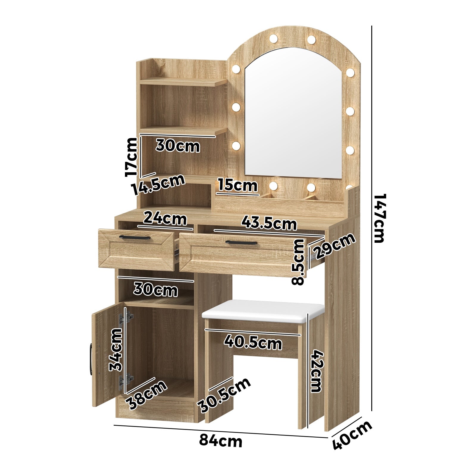 Add a touch of scintillating glam and lovely aura to your daily dressing up and beauty routine with our Oikiture Dressing Table Set that will certainly brighten up your day. With its celebrity-inspired 12-LED-light bulb arched mirror frame, the dressing table conjures up all the glamourous vibes to add to an otherwise normal daily occurrence. More goodies with the dressing mirror include light colour adjustments with three colour options and a 10-level light intensity adjustment for the desired mood and ambience, and a USB input built into the frame with an included cable. WARNING: Children have died from furniture tipping over. Always secure furniture to prevent serious injury or death. Never allow children to climb or sand on furniture.