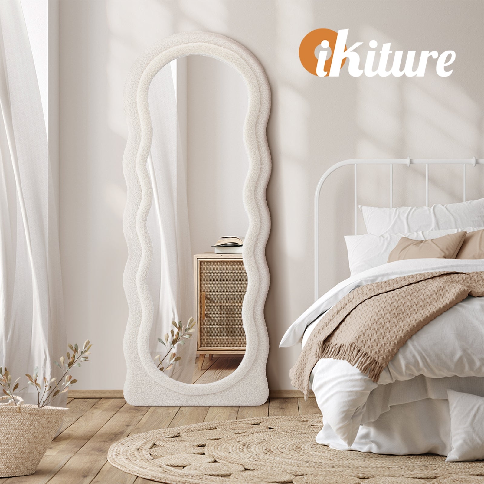 Stunning beauty from top to bottom. The Oikiture Full-Length Mirror is designed to reflect with crystal-clear clarity for viewing precision. With a full view of everything that is you from head to toe, our full-length mirror lets you prepare your makeup or check out your entire outfit with ease. You can also feel the luxury as you run the hands over the white boucle fabric upholstery on the frame that certainly adds a touch of a class and sophistication to the mirror. And with its organic-inspired design, the full-length mirror also stands out from the ordinary with an artistic and abstract appeal. The perfect inspiration to get creative with your styling all over. Set it on the floor or mount it on the wall, the full-length mirror will certainly captivate you with its exceptional presence. Dress well, makeup better. The Oikiture Full-Length Mirror is not short on inspiring stunning beauty in every way.