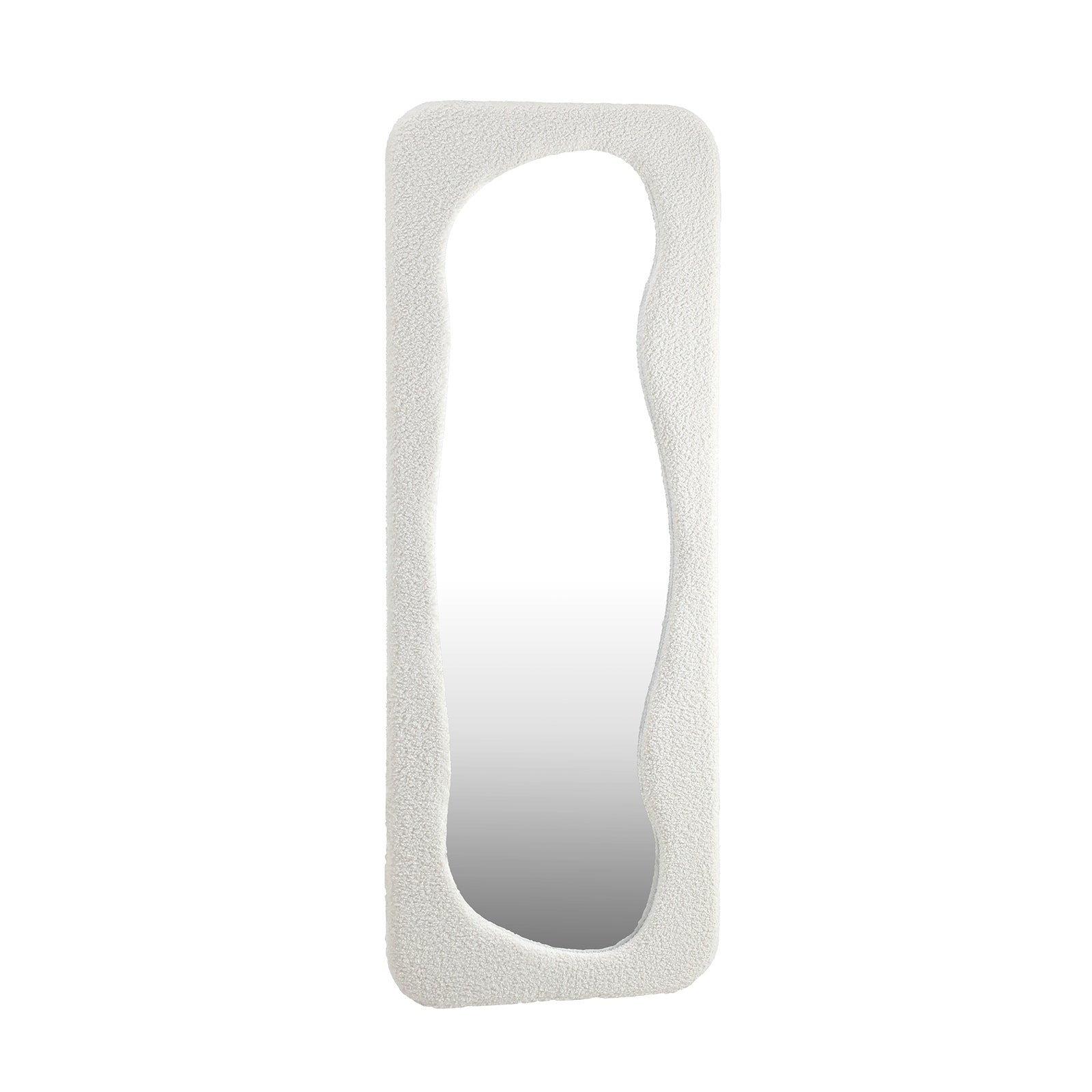 Stunning beauty from top to bottom. The Oikiture Full-Length Mirror is designed to reflect with crystal-clear clarity for viewing precision. With a full view of everything that is you from head to toe, our full-length mirror lets you prepare your makeup or check out your entire outfit with ease. You can also feel the luxury as you run the hands over the white boucle fabric upholstery on the frame that certainly adds a touch of a class and sophistication to the mirror. And with its organic-inspired design, the full-length mirror also stands out from the ordinary with an artistic and abstract appeal. The perfect inspiration to get creative with your styling all over. Set it on the floor or mount it on the wall, the full-length mirror will certainly captivate you with its exceptional presence. Dress well, makeup better. The Oikiture Full-Length Mirror is not short on inspiring stunning beauty in every way.