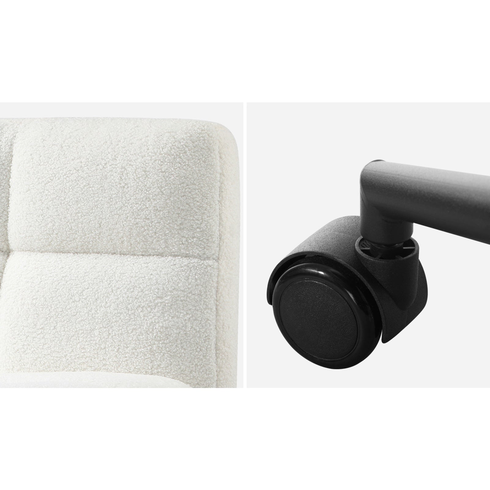 Oikiture Mid Back Armless Office Desk Chair Wide Seat with Wheels Boucle White