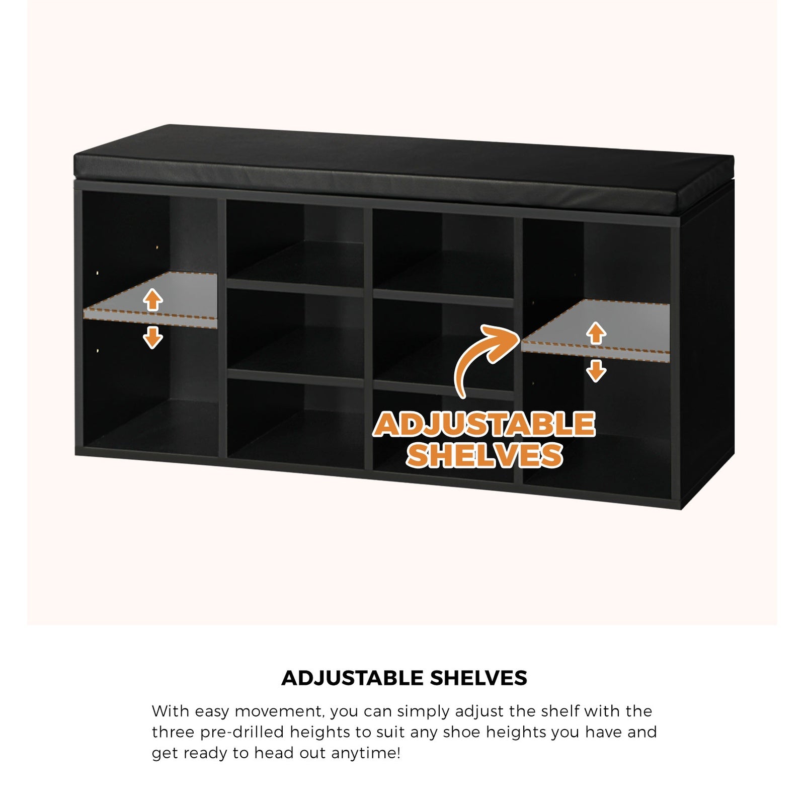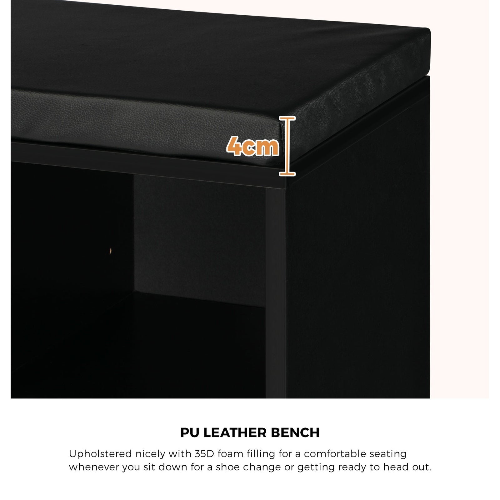 Keeping the hallway neat and tidy is easy with our Oikiture shoe storage solutions. And it is even better with our Oikiture Shoe Storage Bench that provides not only ample footwear storage, but also convenient seating as a bench. A clever 2-in-1 design for space-challenged spaces no less. The shoe storage bench is certainly not lacking in any way. The meticulous craftsmanship sees a thoughtful attention to details such as the 15mm thick E1 particle board construction for strength, the non-toxic melamine finish for durability, anti-rust nickel-plated steel hinges for heavy-duty reliability, 35D foam for comfortable 4cm thick seat cushioning, and the quality PU leather upholstery for easy