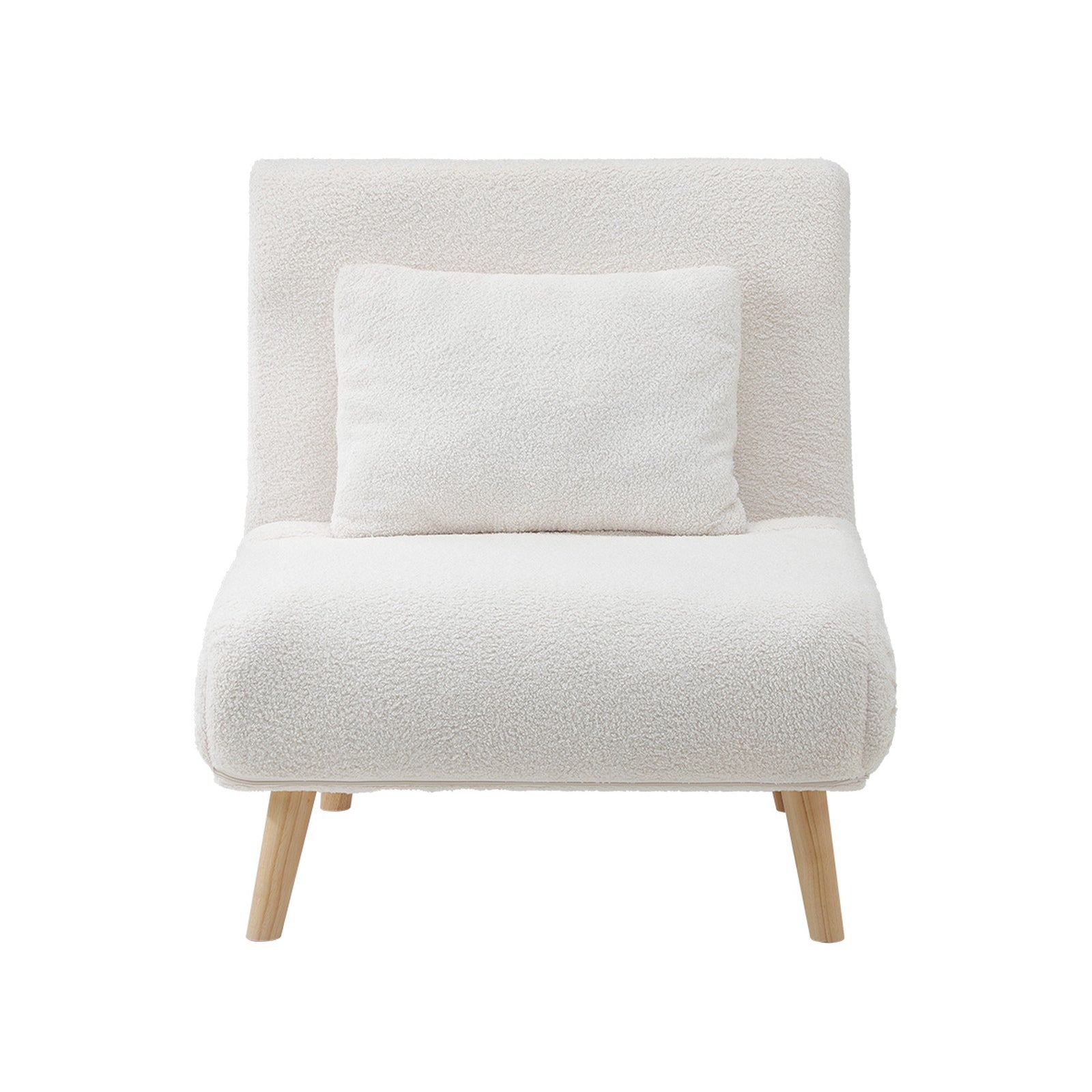Oikiture Sofa Bed Lounge Chair Sherpa Fabric Recliner Wood Leg Single Seat White