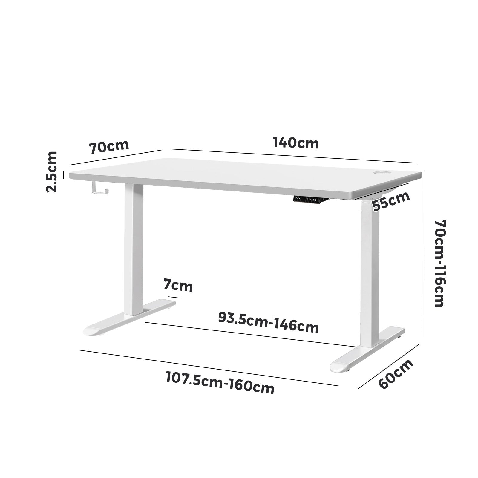 Oikiture Standing Desk Electric Dual Motor Sit Stand Up Height Adjustable 140cm
