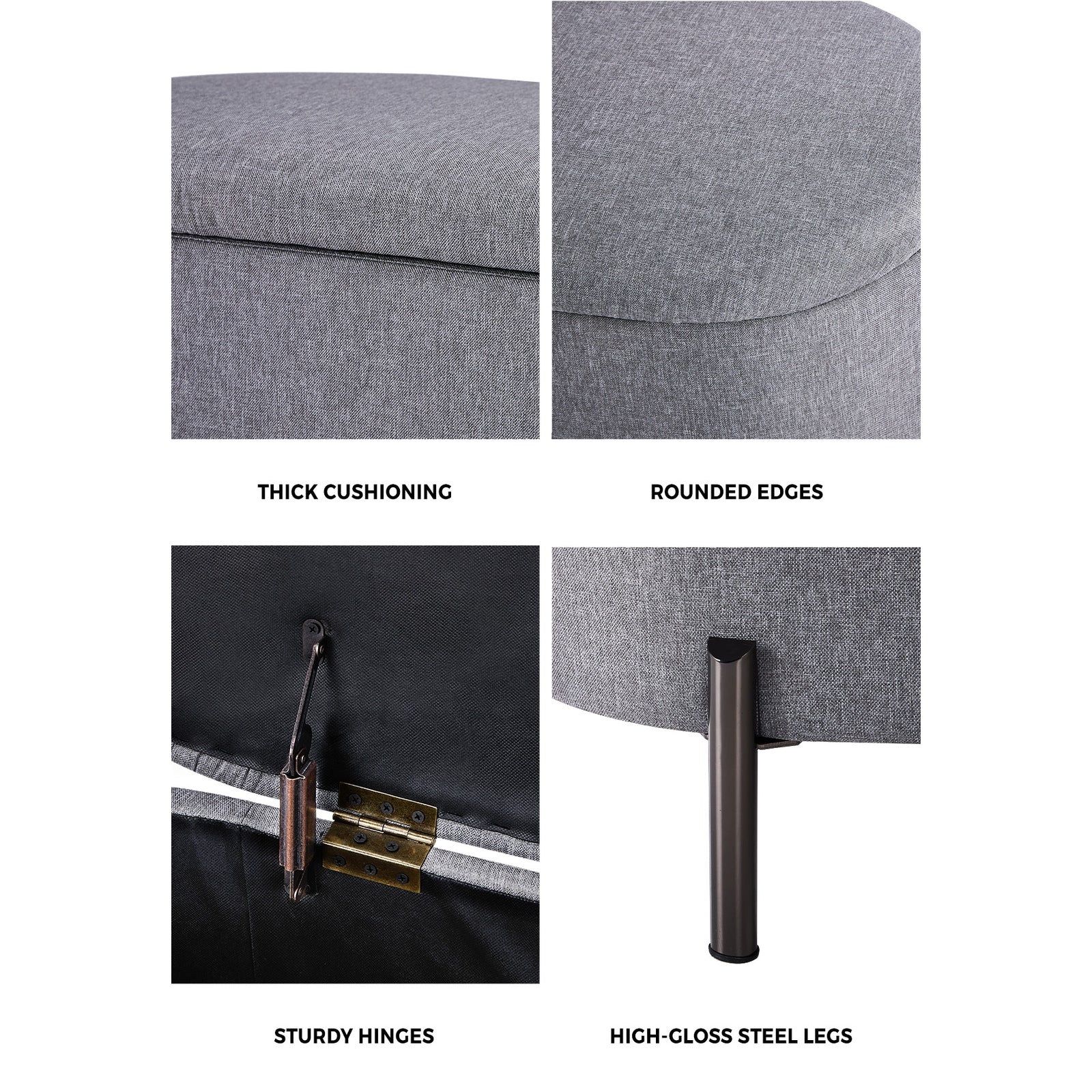 Oikiture Storage Ottoman Bench Oval Footstool Blanket Box Chest Toy Linen Grey