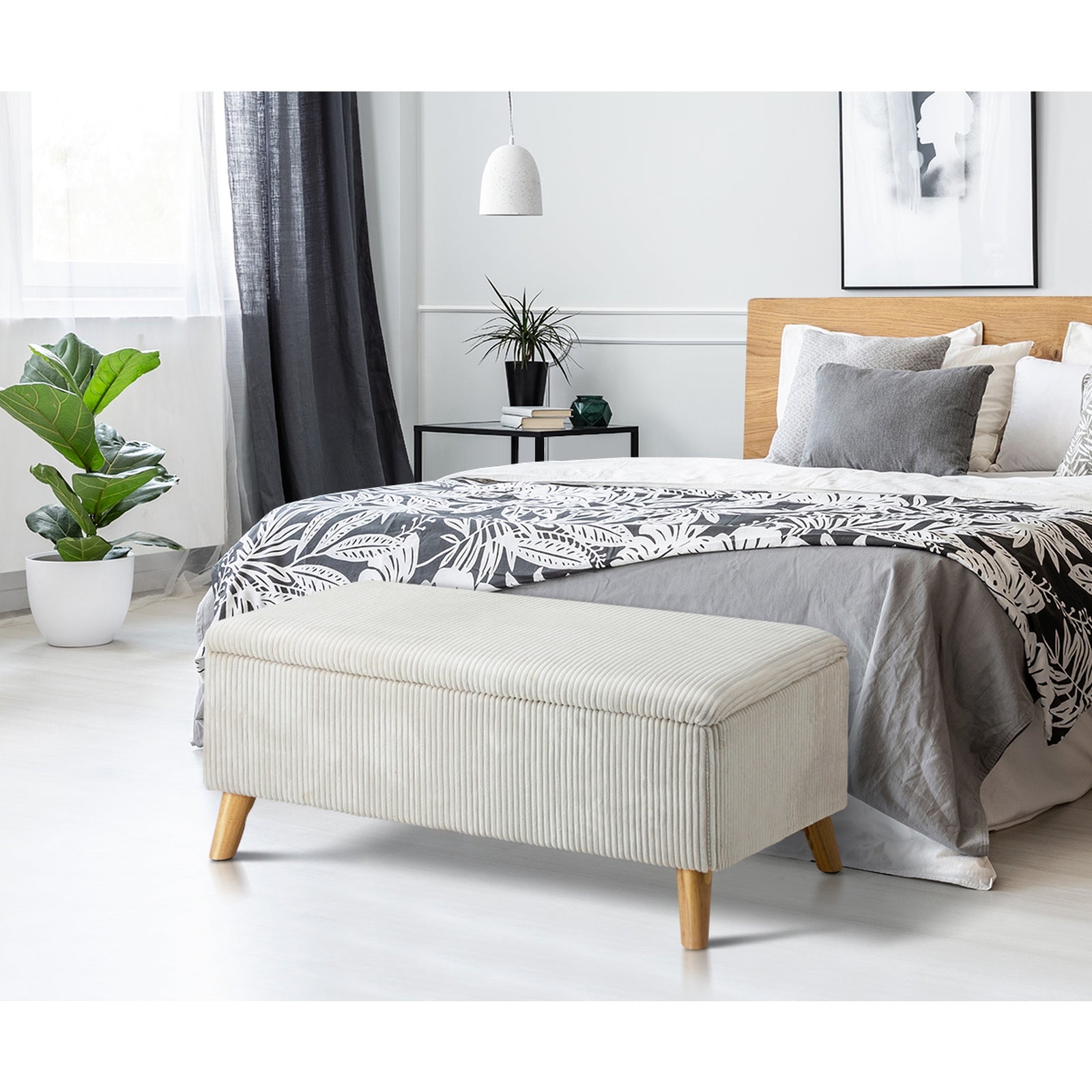 Oikiture Storage Ottoman Blanket Box Chest Toy Foot Stool LARGE Polyester Beige